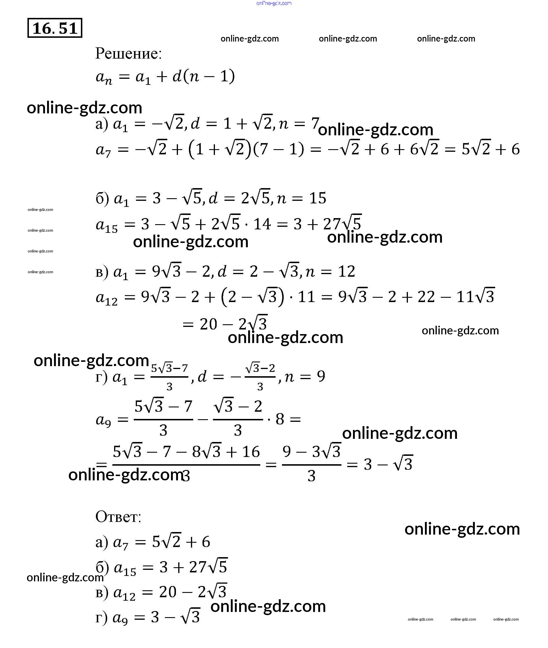Готовые домашние задания по Алгебре за 9 класс Задачник Мордкович, Александрова 2010 - § 16. Арифметическая прогрессия Глава 4. Прогрессии 16.51