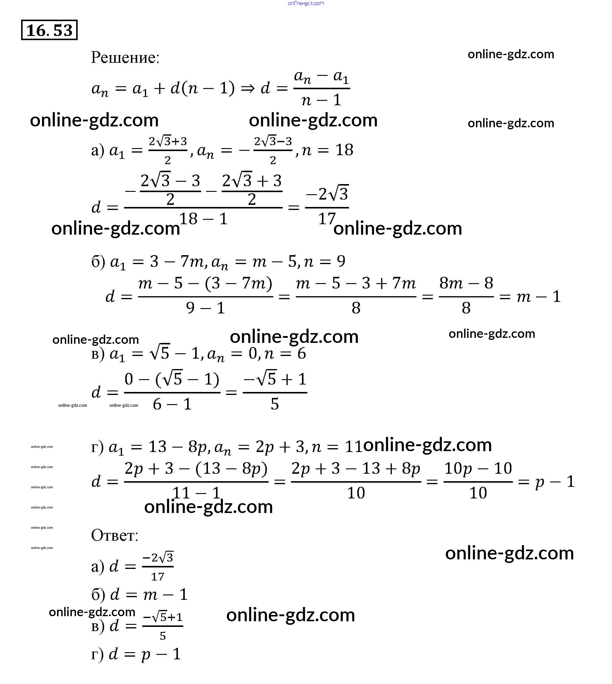 Готовые домашние задания по Алгебре за 9 класс Задачник Мордкович, Александрова 2010 - § 16. Арифметическая прогрессия Глава 4. Прогрессии 16.53