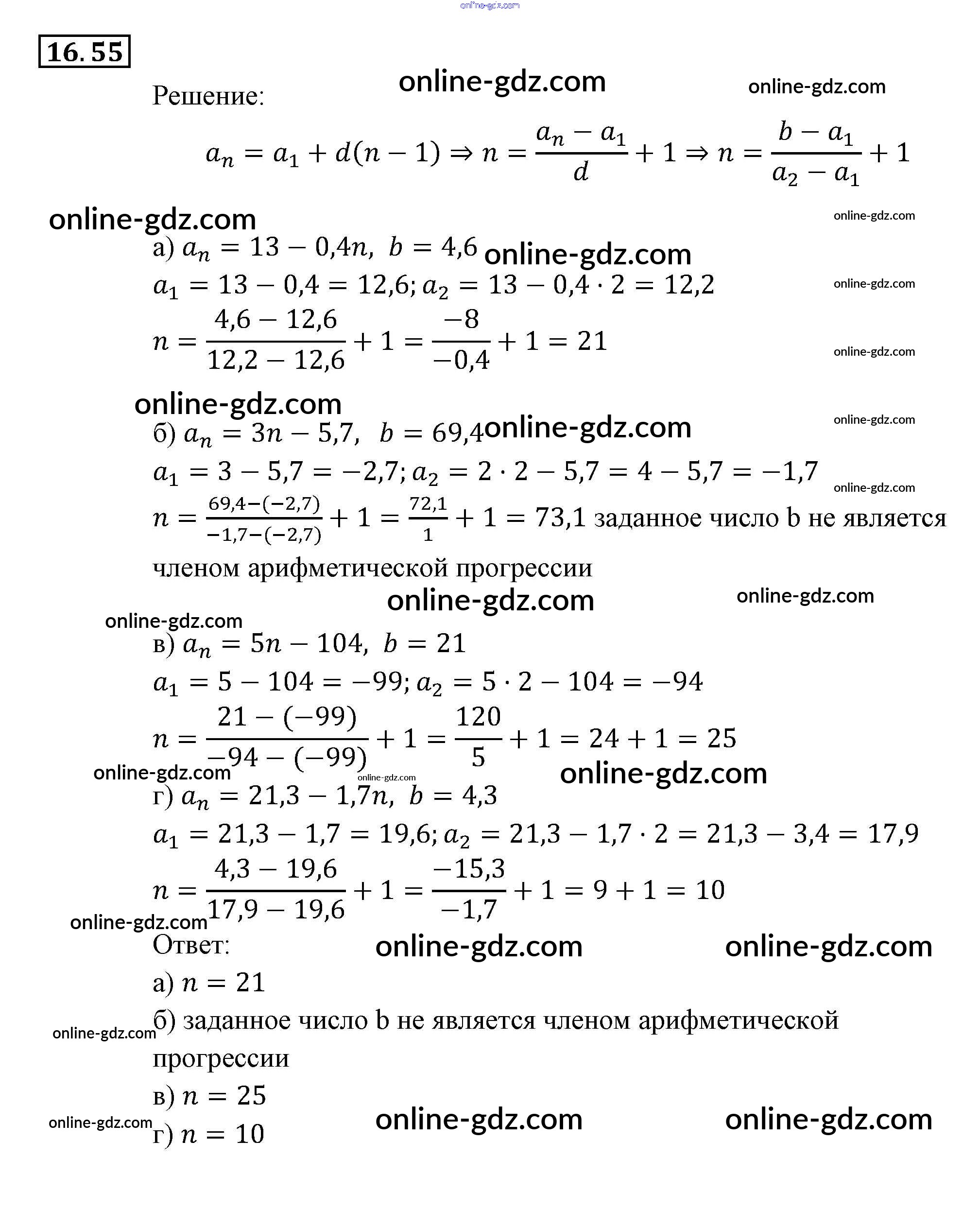 Готовые домашние задания по Алгебре за 9 класс Задачник Мордкович, Александрова 2010 - § 16. Арифметическая прогрессия Глава 4. Прогрессии 16.55