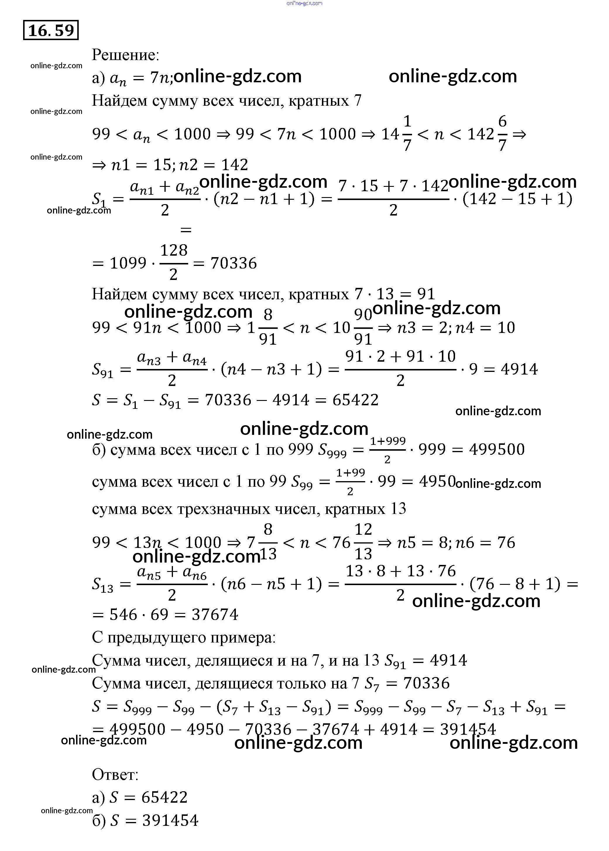 Готовые домашние задания по Алгебре за 9 класс Задачник Мордкович, Александрова 2010 - § 16. Арифметическая прогрессия Глава 4. Прогрессии 16.59