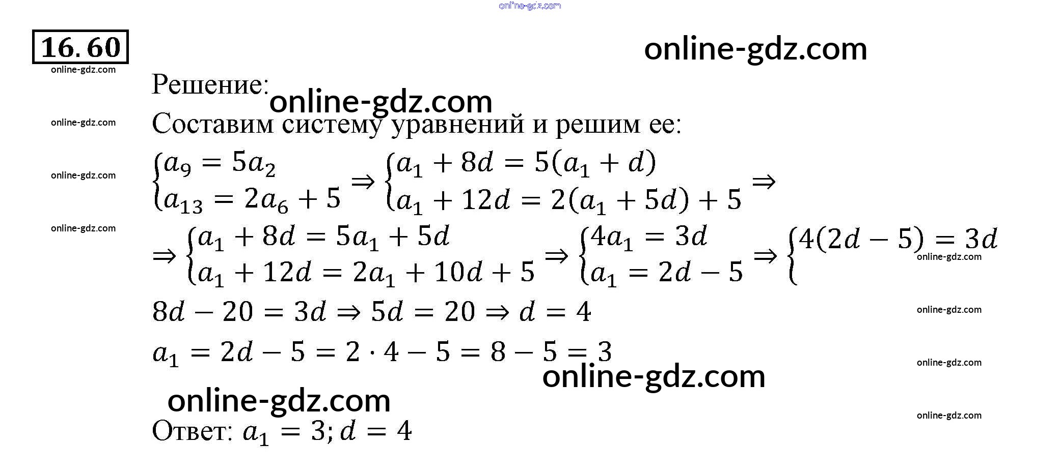 Готовые домашние задания по Алгебре за 9 класс Задачник Мордкович, Александрова 2010 - § 16. Арифметическая прогрессия Глава 4. Прогрессии 16.60
