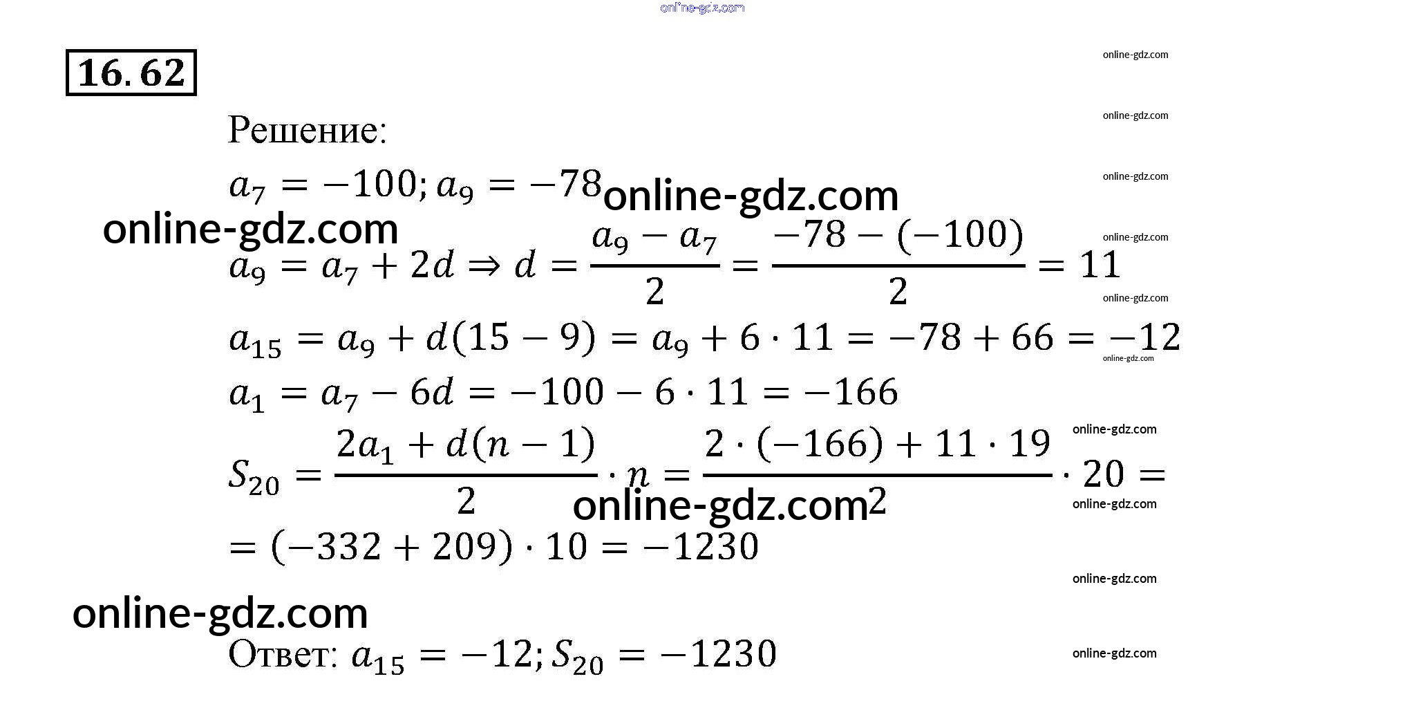 Готовые домашние задания по Алгебре за 9 класс Задачник Мордкович, Александрова 2010 - § 16. Арифметическая прогрессия Глава 4. Прогрессии 16.62