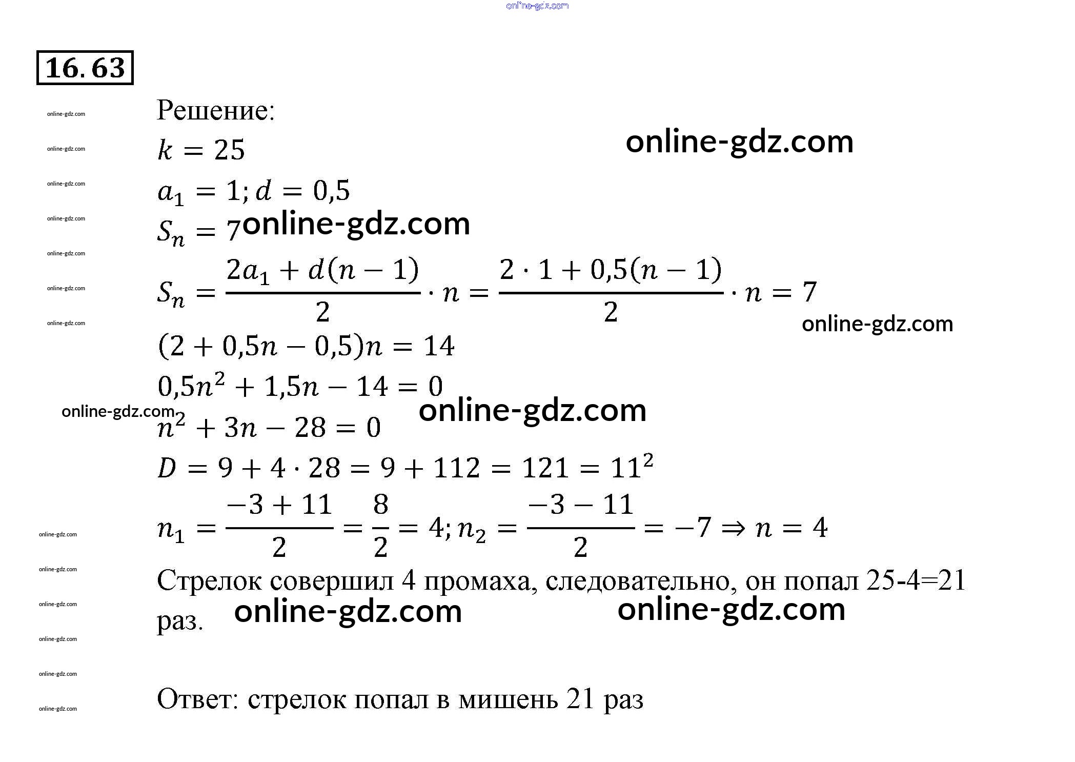 Готовые домашние задания по Алгебре за 9 класс Задачник Мордкович, Александрова 2010 - § 16. Арифметическая прогрессия Глава 4. Прогрессии 16.63