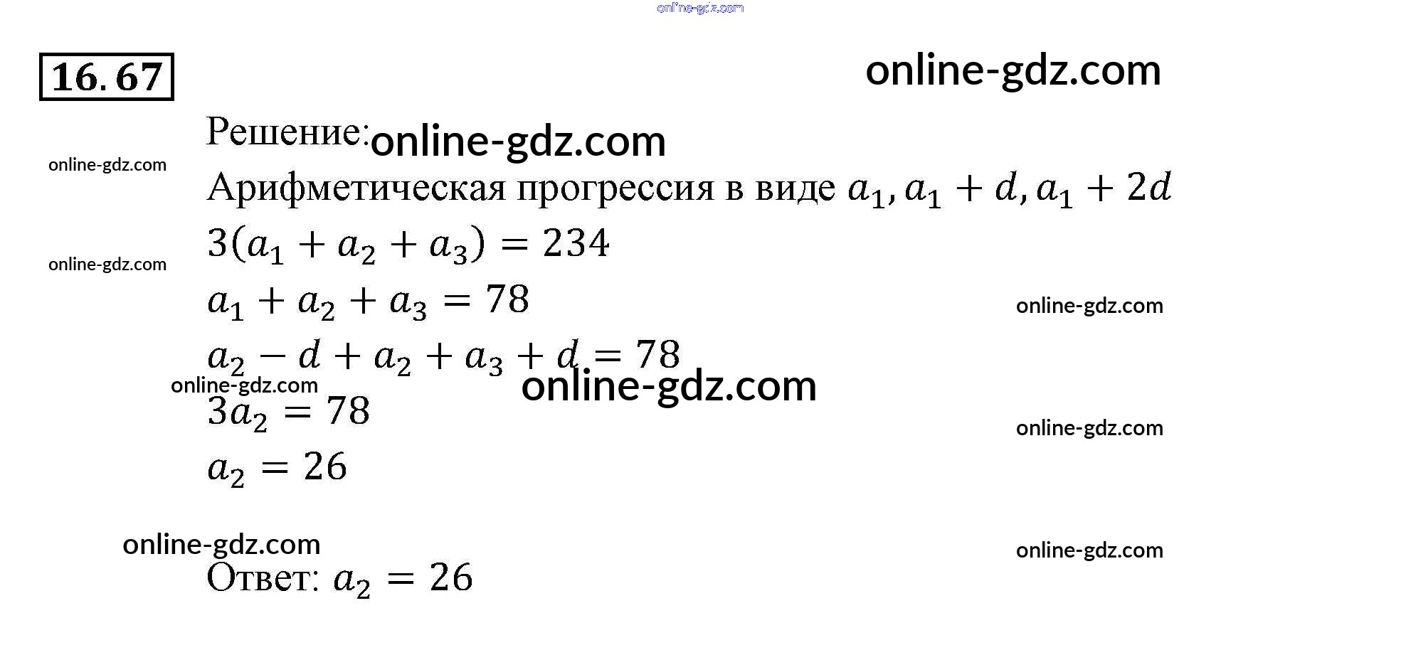 Готовые домашние задания по Алгебре за 9 класс Задачник Мордкович, Александрова 2010 - § 16. Арифметическая прогрессия Глава 4. Прогрессии 16.67