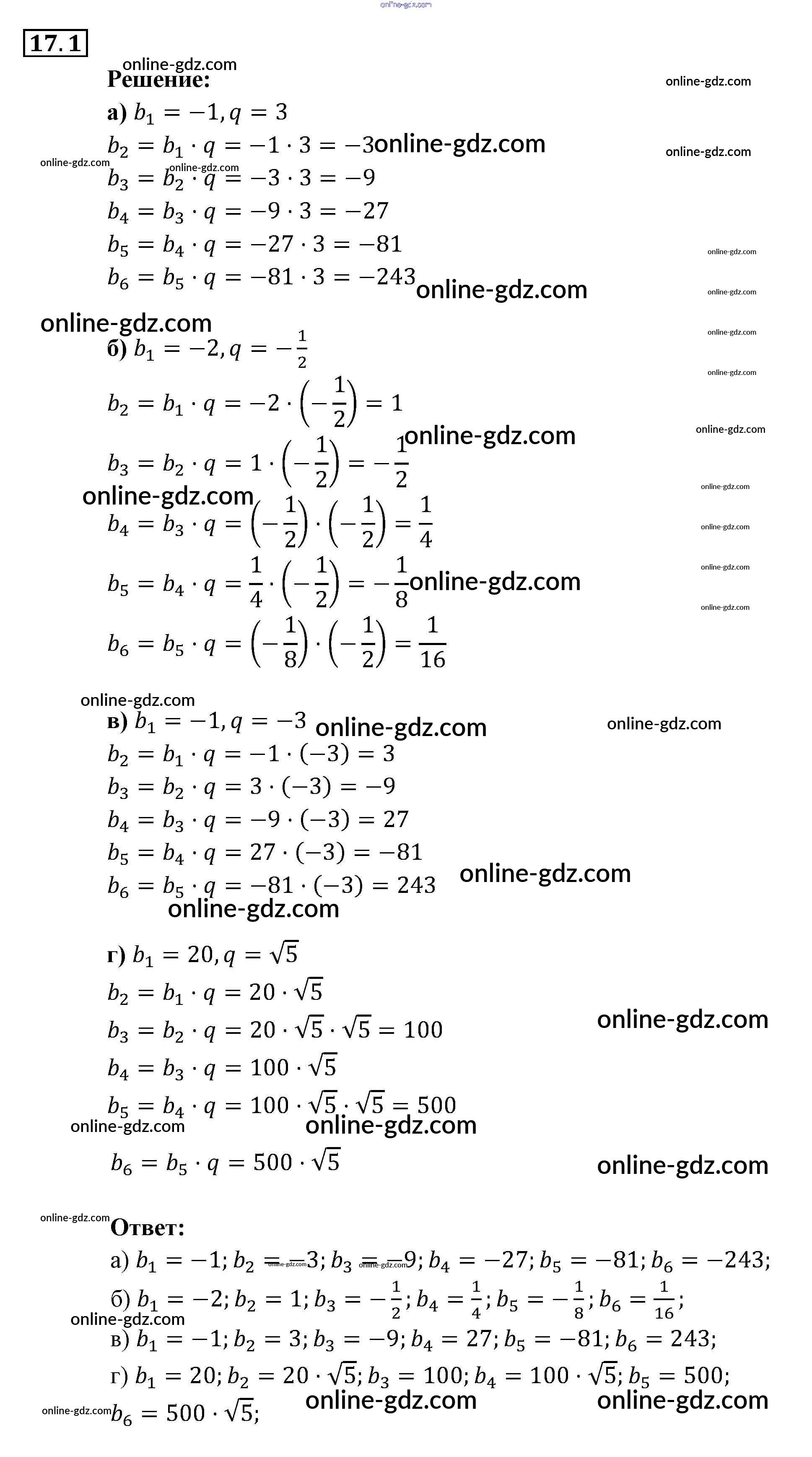 Готовые домашние задания по Алгебре за 9 класс Задачник Мордкович, Александрова 2010 - § 17. Геометрическая прогрессия Глава 4. Прогрессии 17.1