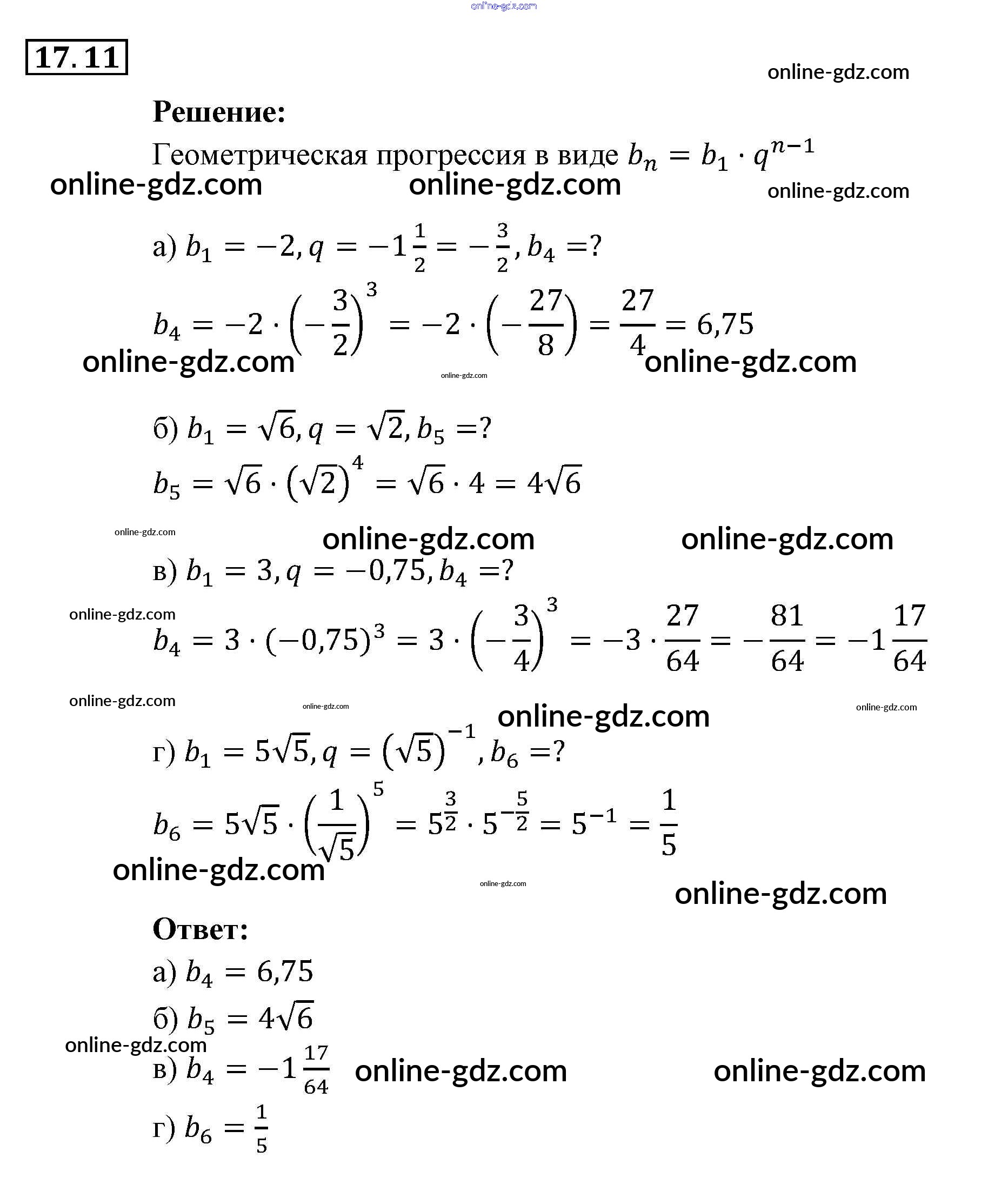 Готовые домашние задания по Алгебре за 9 класс Задачник Мордкович, Александрова 2010 - § 17. Геометрическая прогрессия Глава 4. Прогрессии 17.11