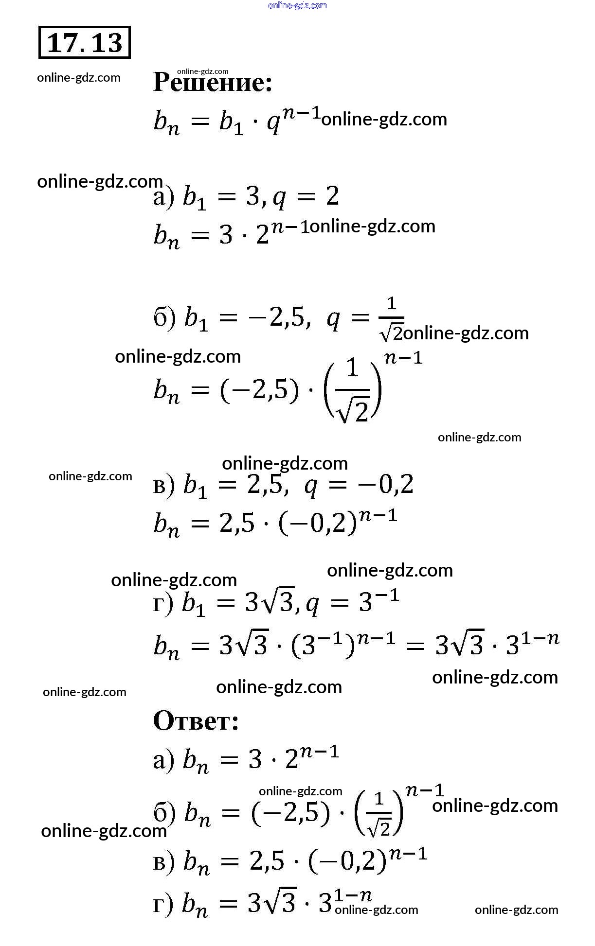 Готовые домашние задания по Алгебре за 9 класс Задачник Мордкович, Александрова 2010 - § 17. Геометрическая прогрессия Глава 4. Прогрессии 17.13