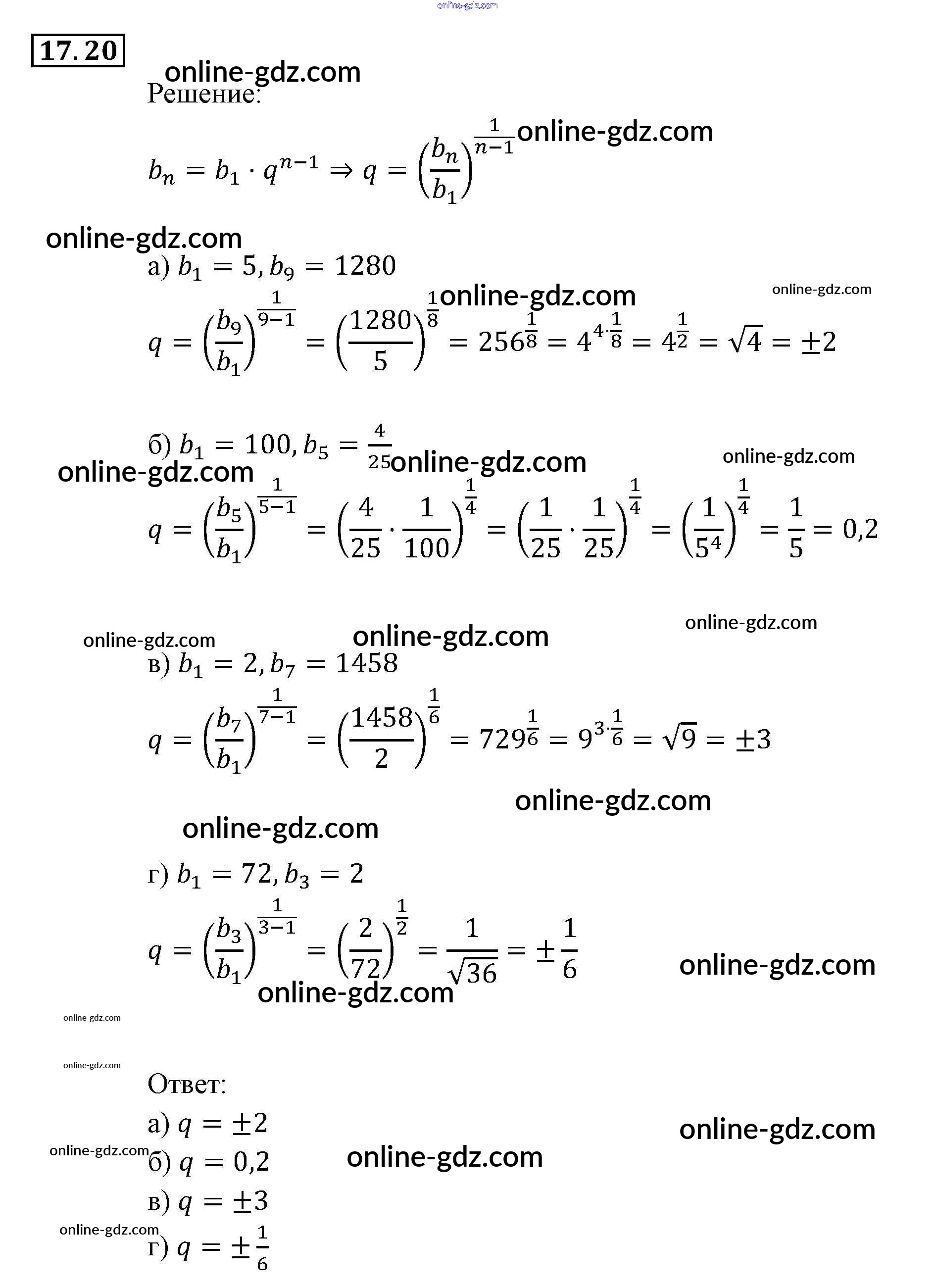 Готовые домашние задания по Алгебре за 9 класс Задачник Мордкович, Александрова 2010 - § 17. Геометрическая прогрессия Глава 4. Прогрессии 17.20