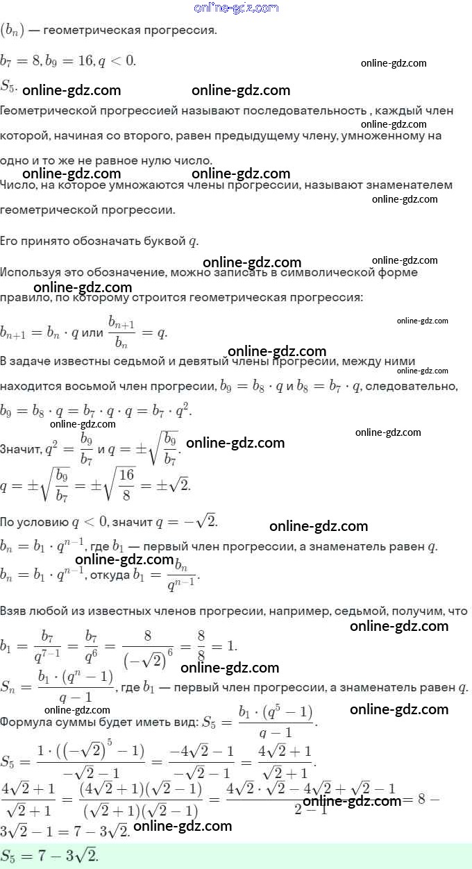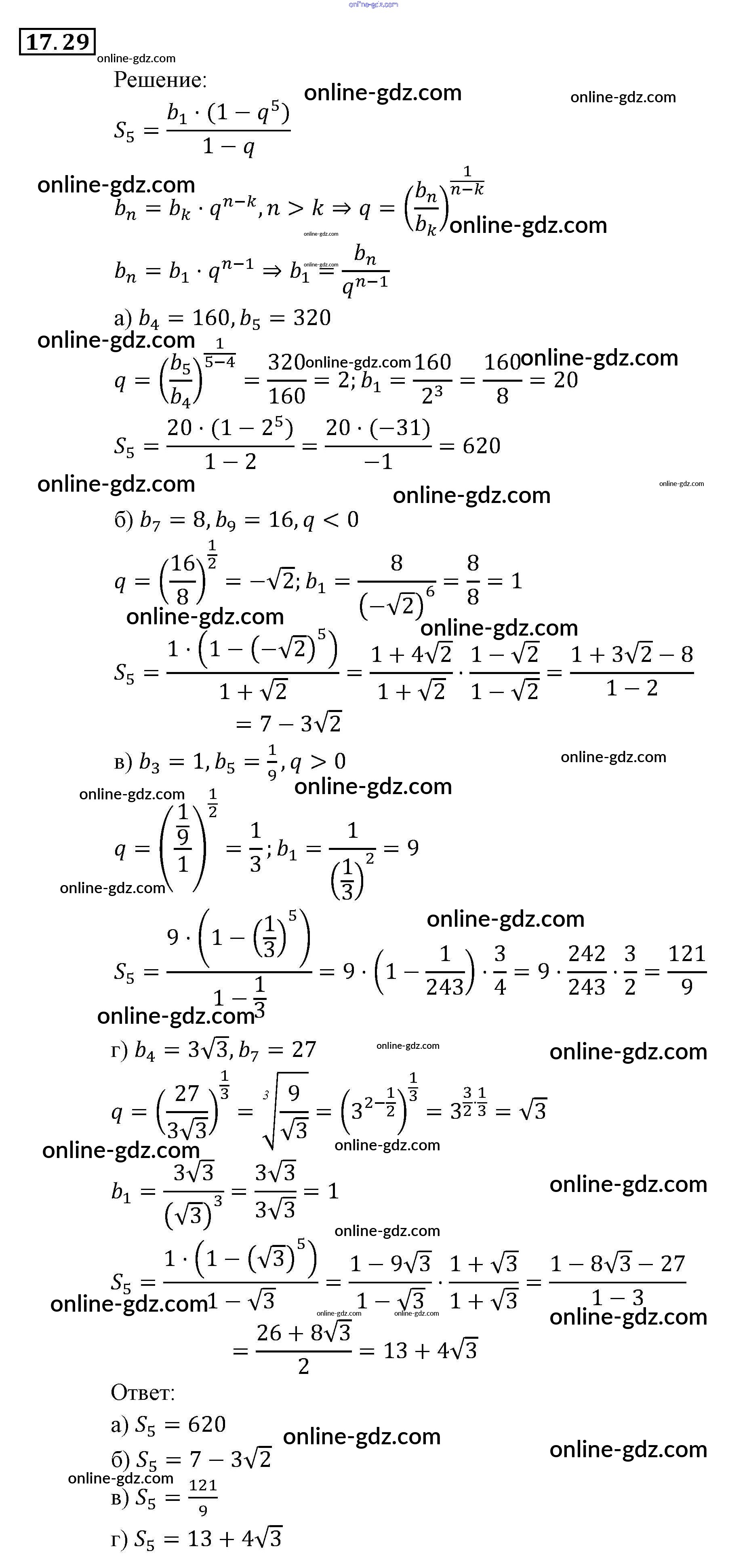 Готовые домашние задания по Алгебре за 9 класс Задачник Мордкович, Александрова 2010 - § 17. Геометрическая прогрессия Глава 4. Прогрессии 17.29