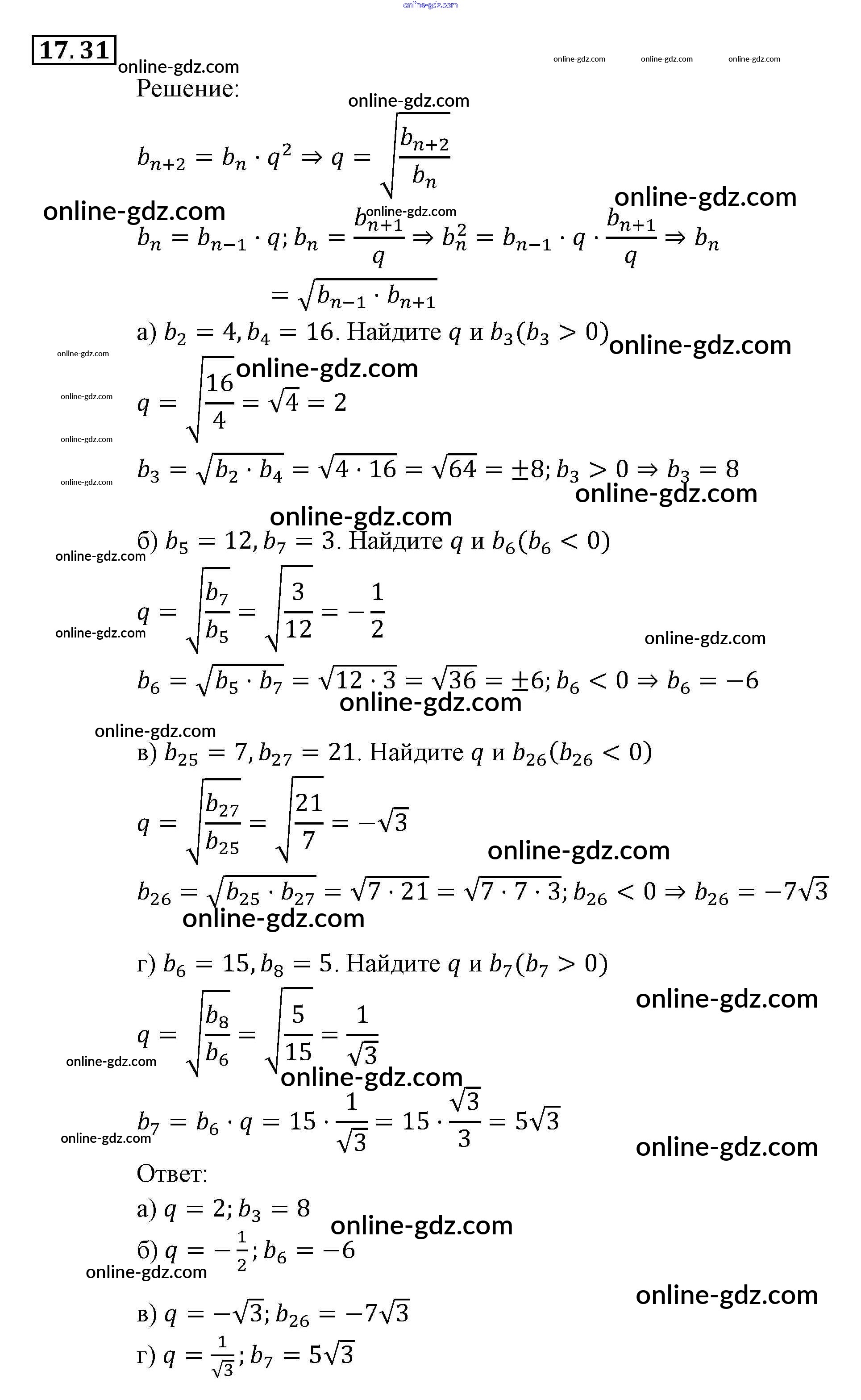 Готовые домашние задания по Алгебре за 9 класс Задачник Мордкович, Александрова 2010 - § 17. Геометрическая прогрессия Глава 4. Прогрессии 17.31