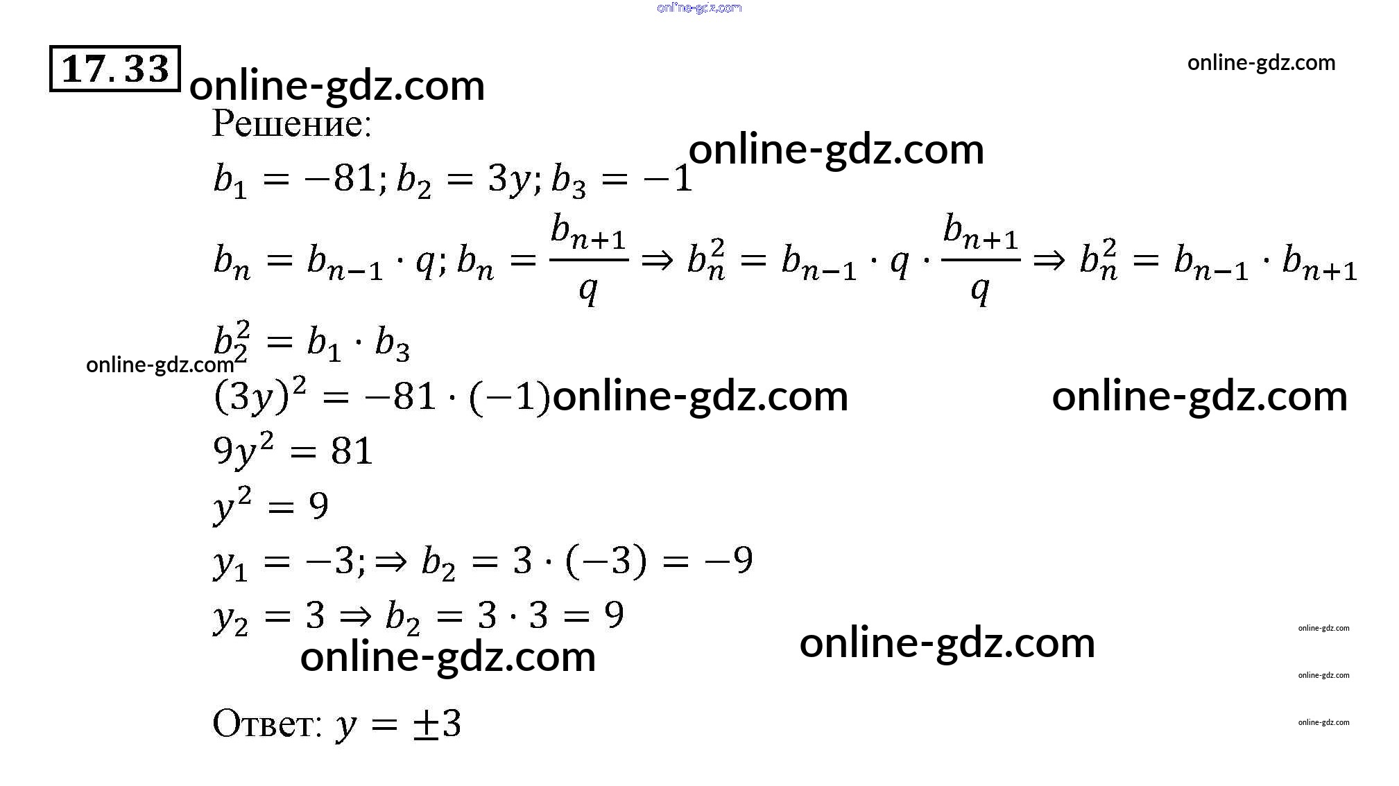 Готовые домашние задания по Алгебре за 9 класс Задачник Мордкович, Александрова 2010 - § 17. Геометрическая прогрессия Глава 4. Прогрессии 17.33