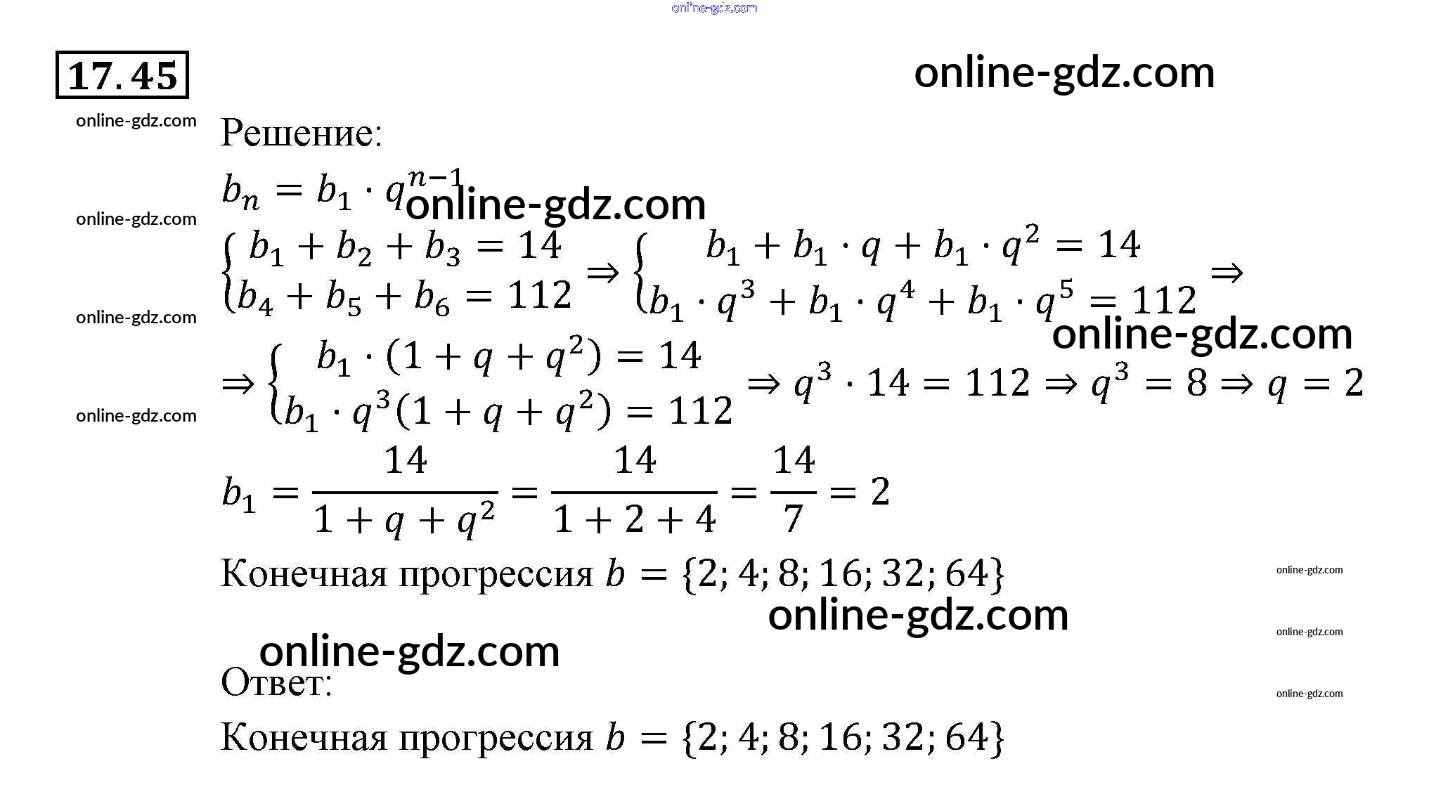 Готовые домашние задания по Алгебре за 9 класс Задачник Мордкович, Александрова 2010 - § 17. Геометрическая прогрессия Глава 4. Прогрессии 17.45