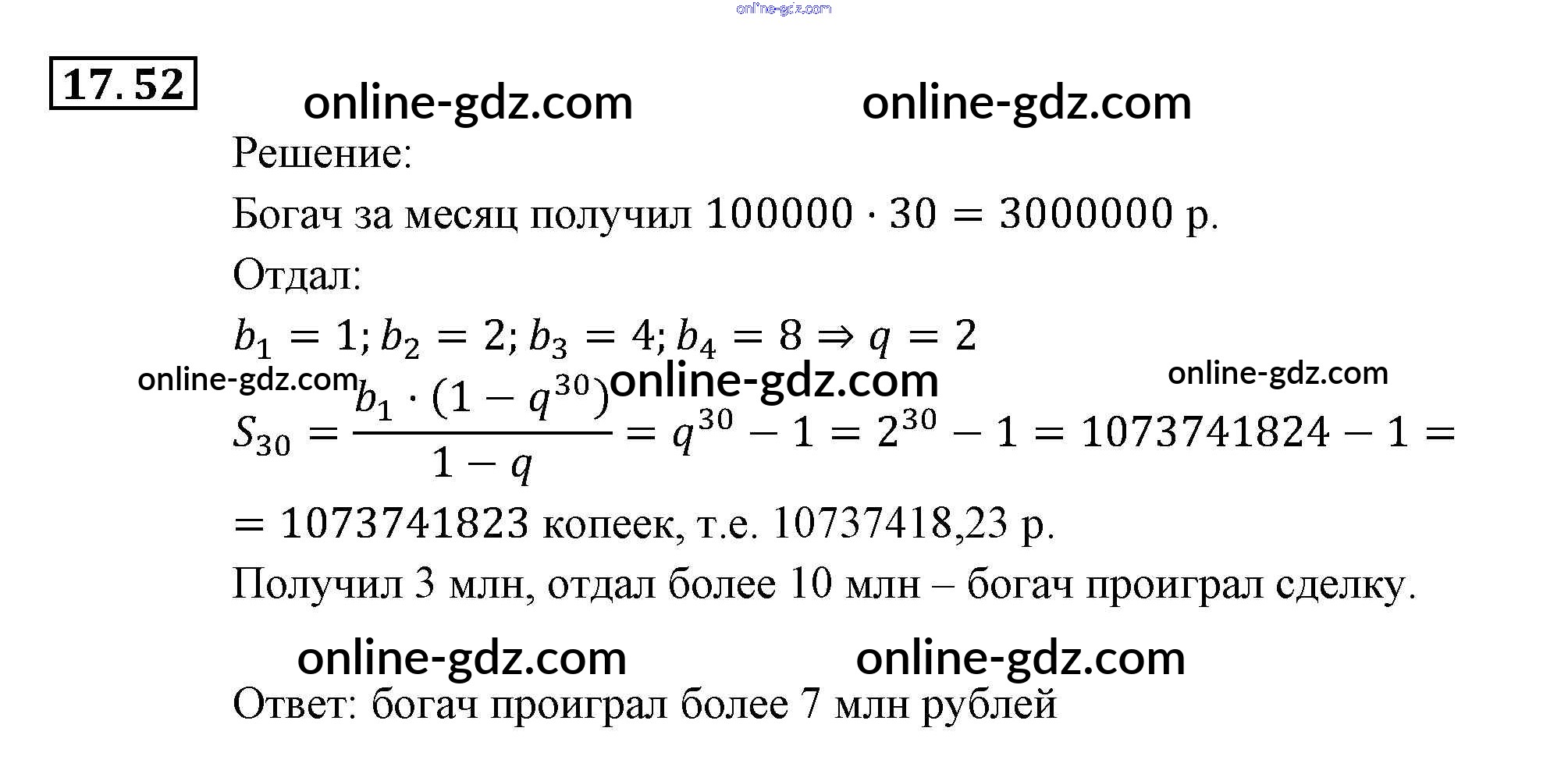 Готовые домашние задания по Алгебре за 9 класс Задачник Мордкович, Александрова 2010 - § 17. Геометрическая прогрессия Глава 4. Прогрессии 17.52