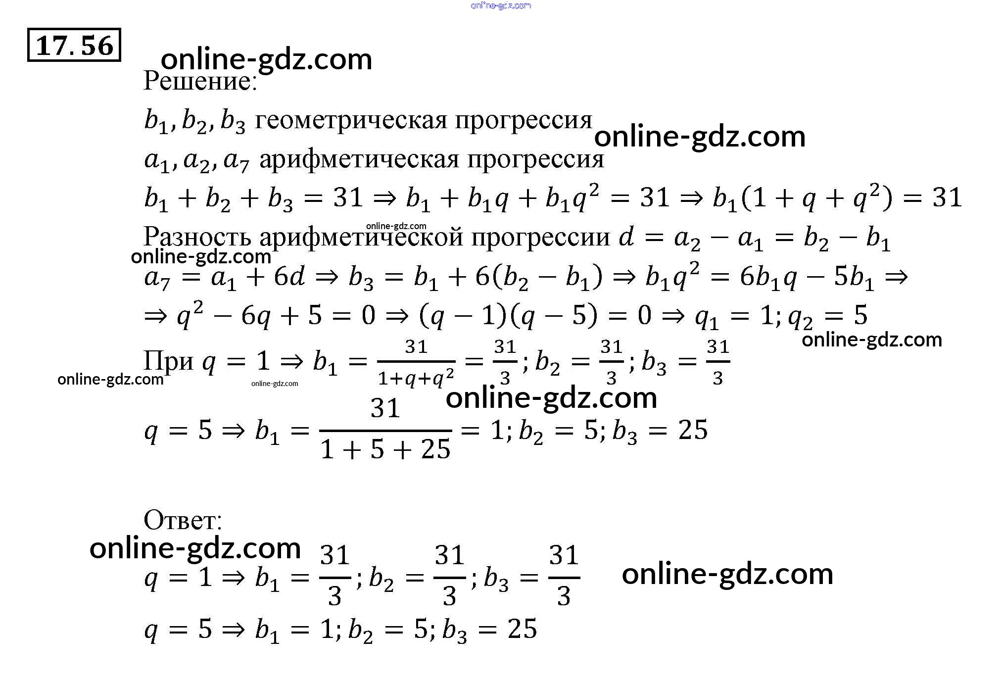 Готовые домашние задания по Алгебре за 9 класс Задачник Мордкович, Александрова 2010 - § 17. Геометрическая прогрессия Глава 4. Прогрессии 17.56