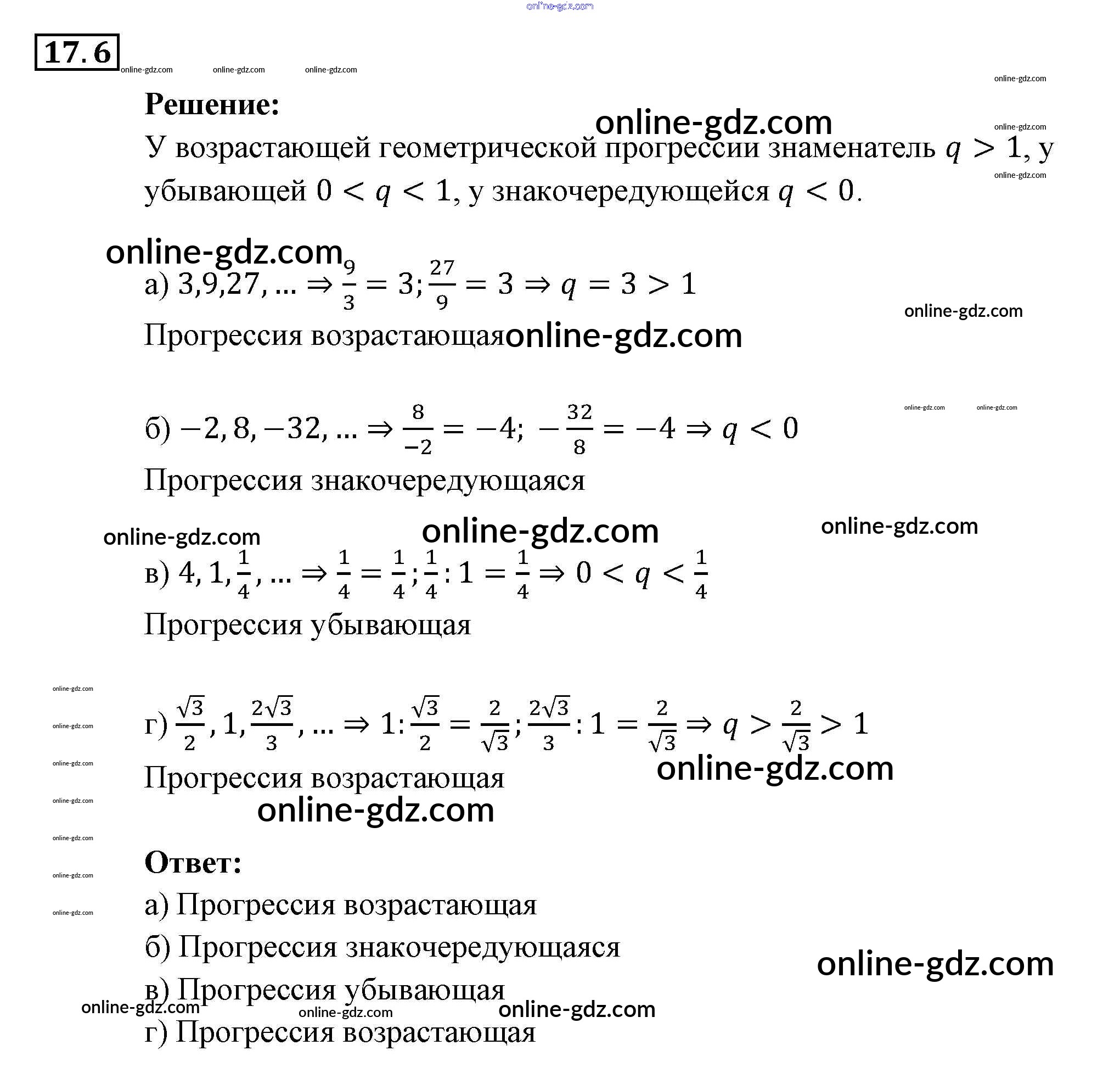 Готовые домашние задания по Алгебре за 9 класс Задачник Мордкович, Александрова 2010 - § 17. Геометрическая прогрессия Глава 4. Прогрессии 17.6