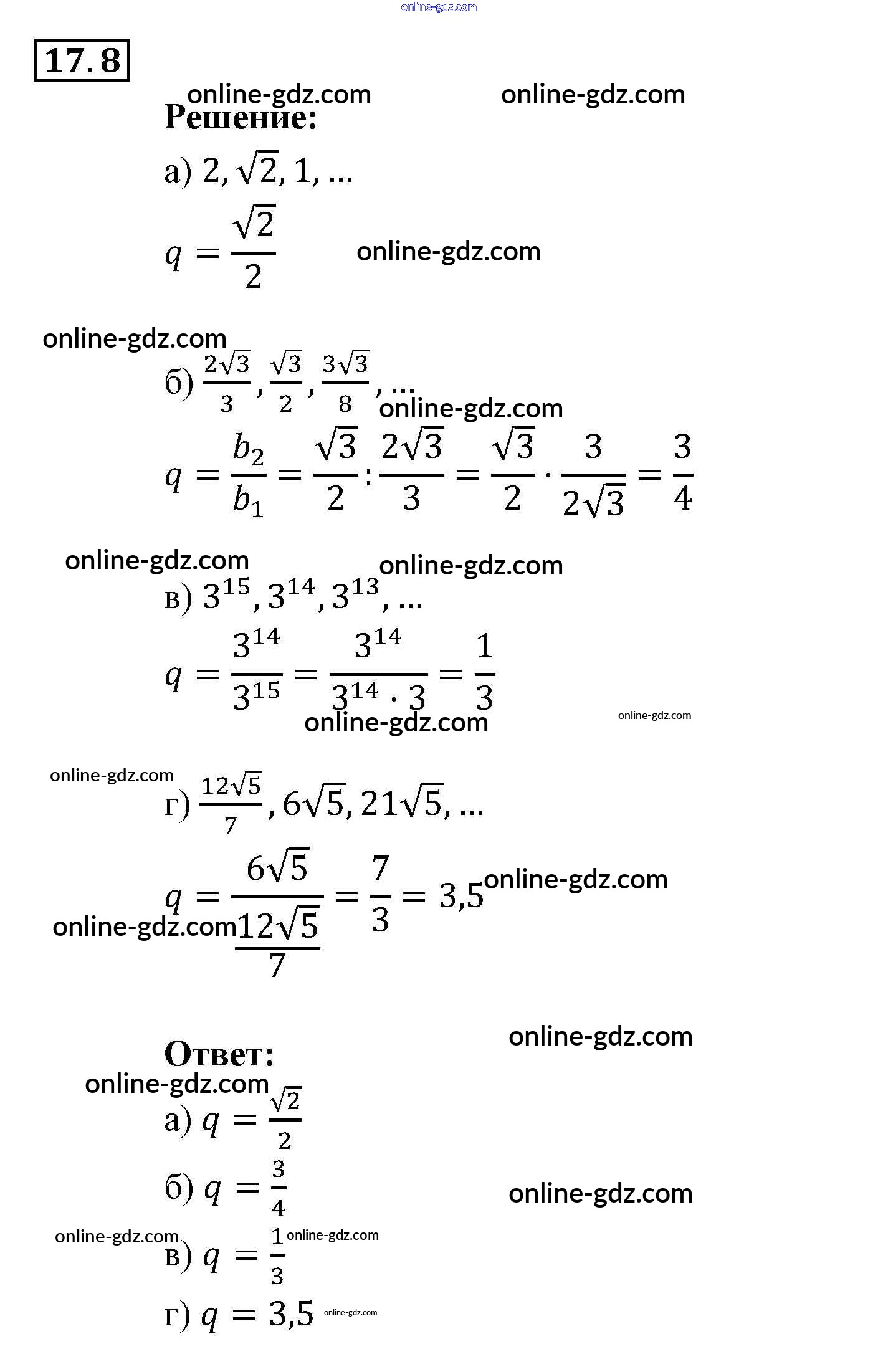 Готовые домашние задания по Алгебре за 9 класс Задачник Мордкович, Александрова 2010 - § 17. Геометрическая прогрессия Глава 4. Прогрессии 17.8