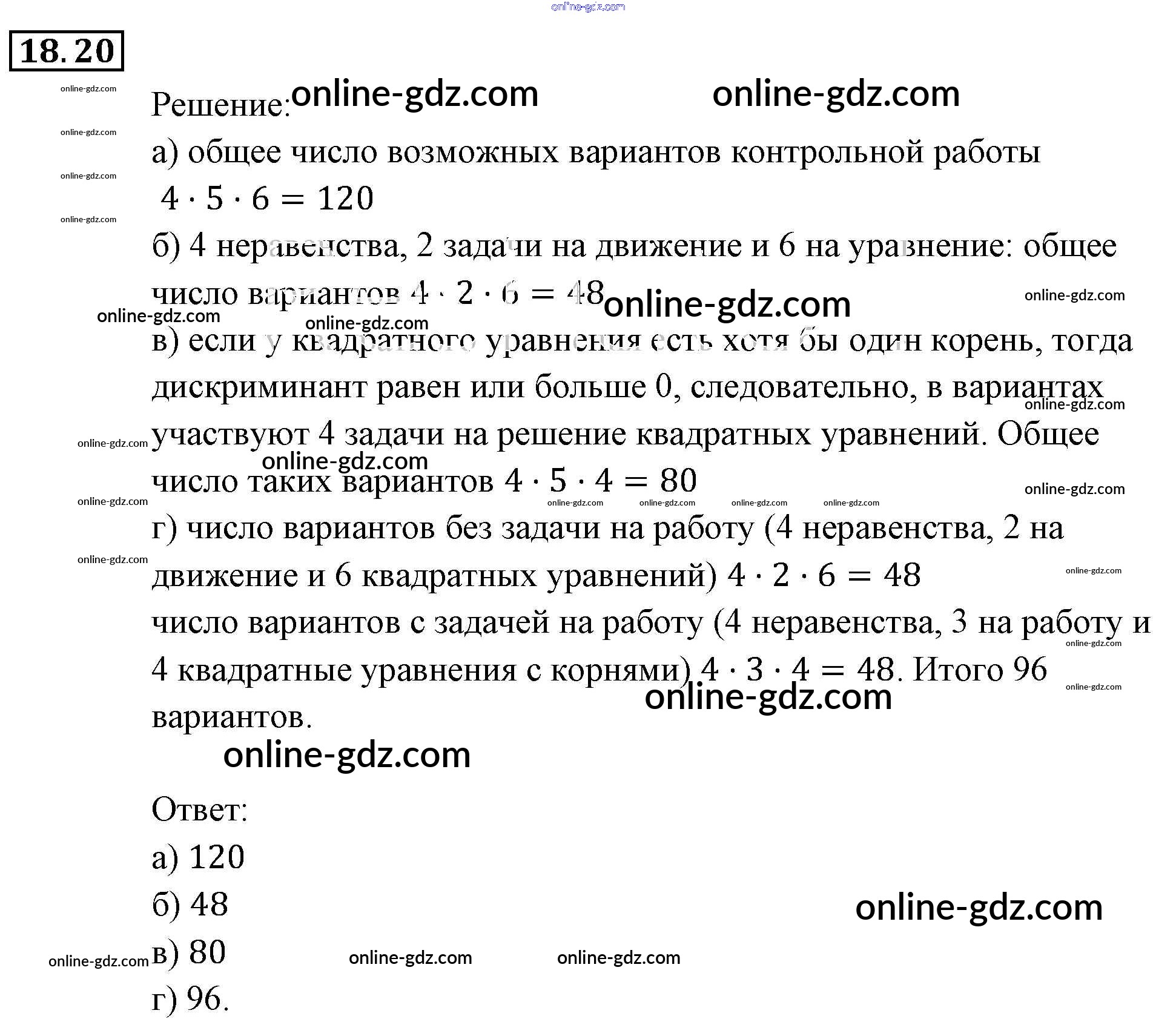 Готовые домашние задания по Алгебре за 9 класс Задачник Мордкович, Александрова 2010 - § 18. Комбинаторные задачи Глава 5. Элементы комбинаторики, статистики и теории вероятностей 18.20