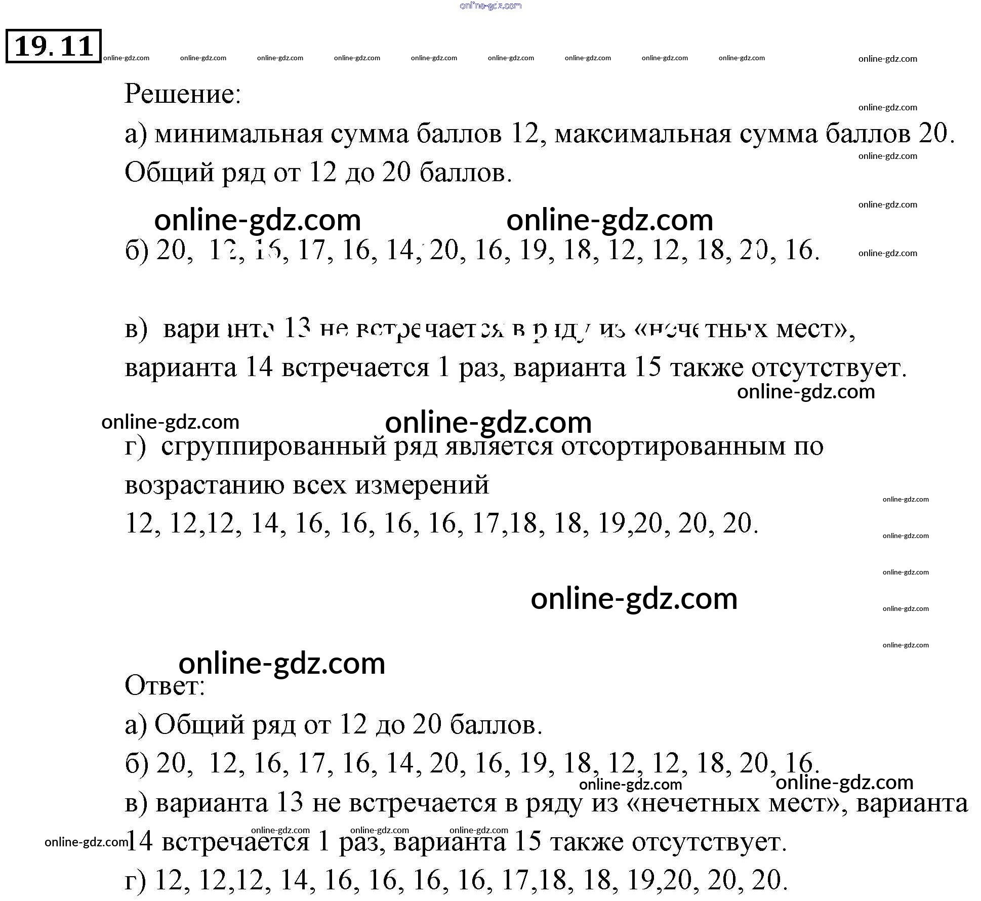 Готовые домашние задания по Алгебре за 9 класс Задачник Мордкович, Александрова 2010 - § 19. Статистика: дизайн информации Глава 5. Элементы комбинаторики, статистики и теории вероятностей 19.11