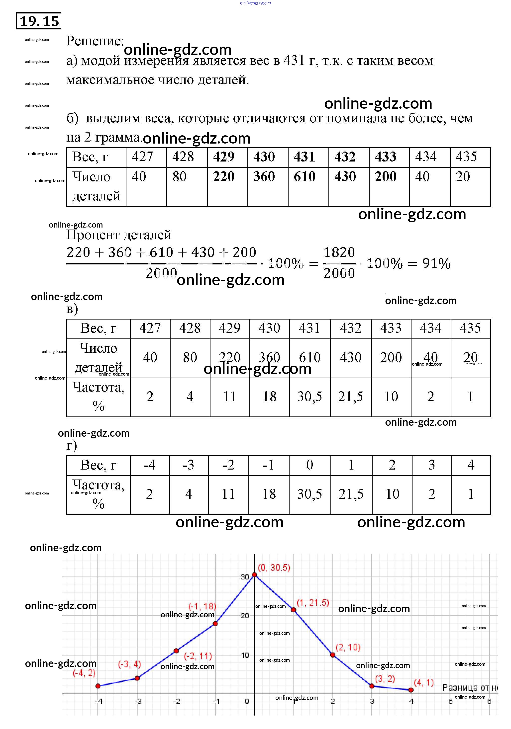 Готовые домашние задания по Алгебре за 9 класс Задачник Мордкович, Александрова 2010 - § 19. Статистика: дизайн информации Глава 5. Элементы комбинаторики, статистики и теории вероятностей 19.15
