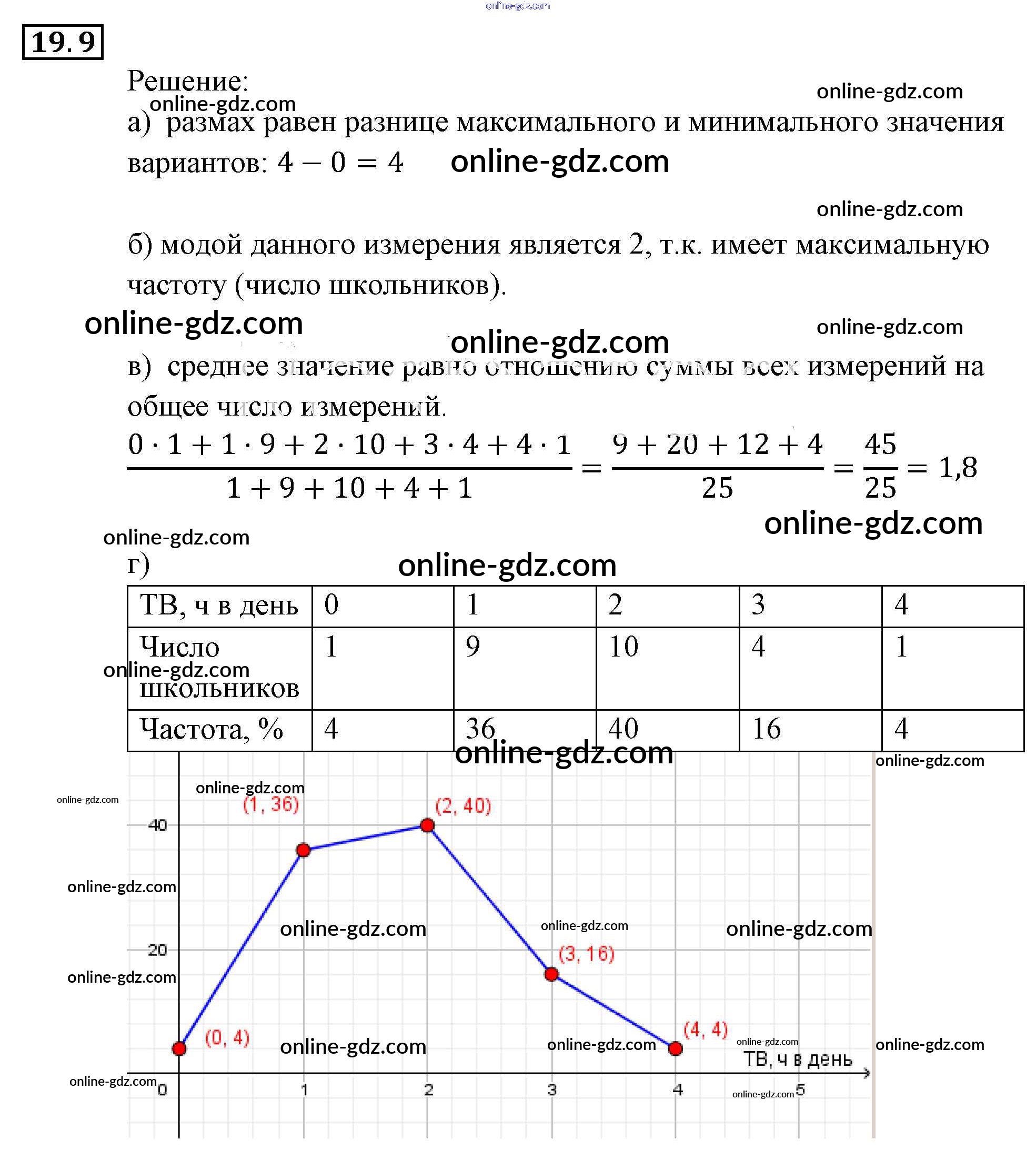 Готовые домашние задания по Алгебре за 9 класс Задачник Мордкович, Александрова 2010 - § 19. Статистика: дизайн информации Глава 5. Элементы комбинаторики, статистики и теории вероятностей 19.9