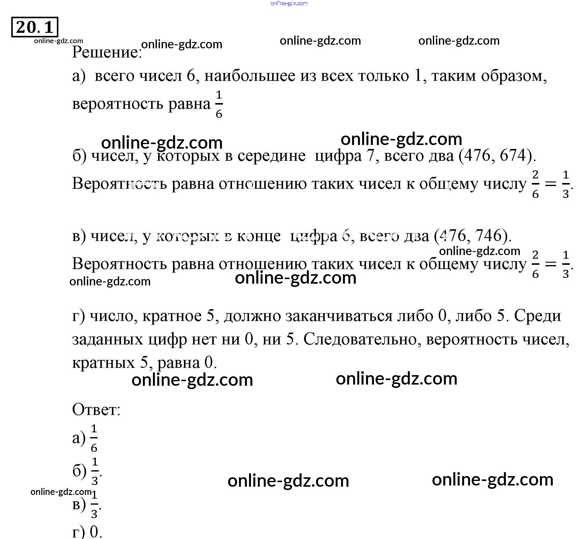 Готовые домашние задания по Алгебре за 9 класс Задачник Мордкович, Александрова 2010 - § 20. Простейшие вероятностные задачи Глава 5. Элементы комбинаторики, статистики и теории вероятностей 20.1