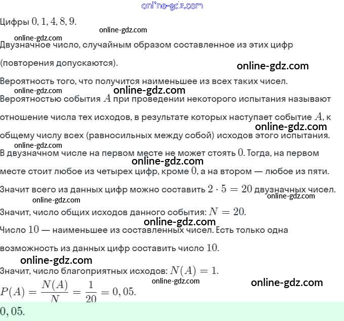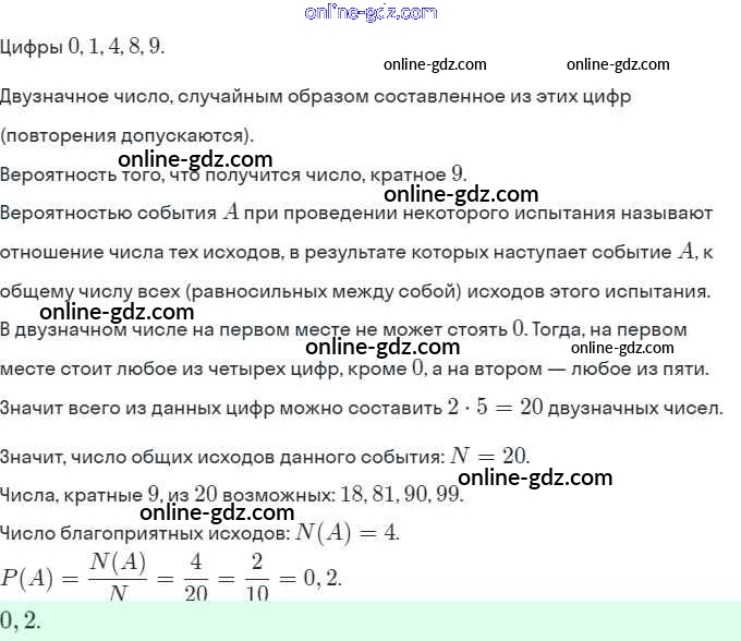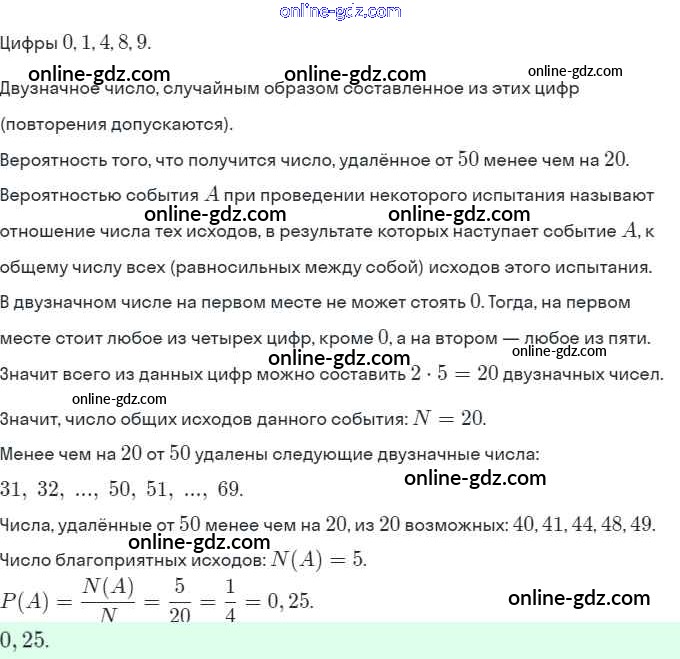 Готовые домашние задания по Алгебре за 9 класс Задачник Мордкович, Александрова 2010 - § 20. Простейшие вероятностные задачи Глава 5. Элементы комбинаторики, статистики и теории вероятностей 20.13