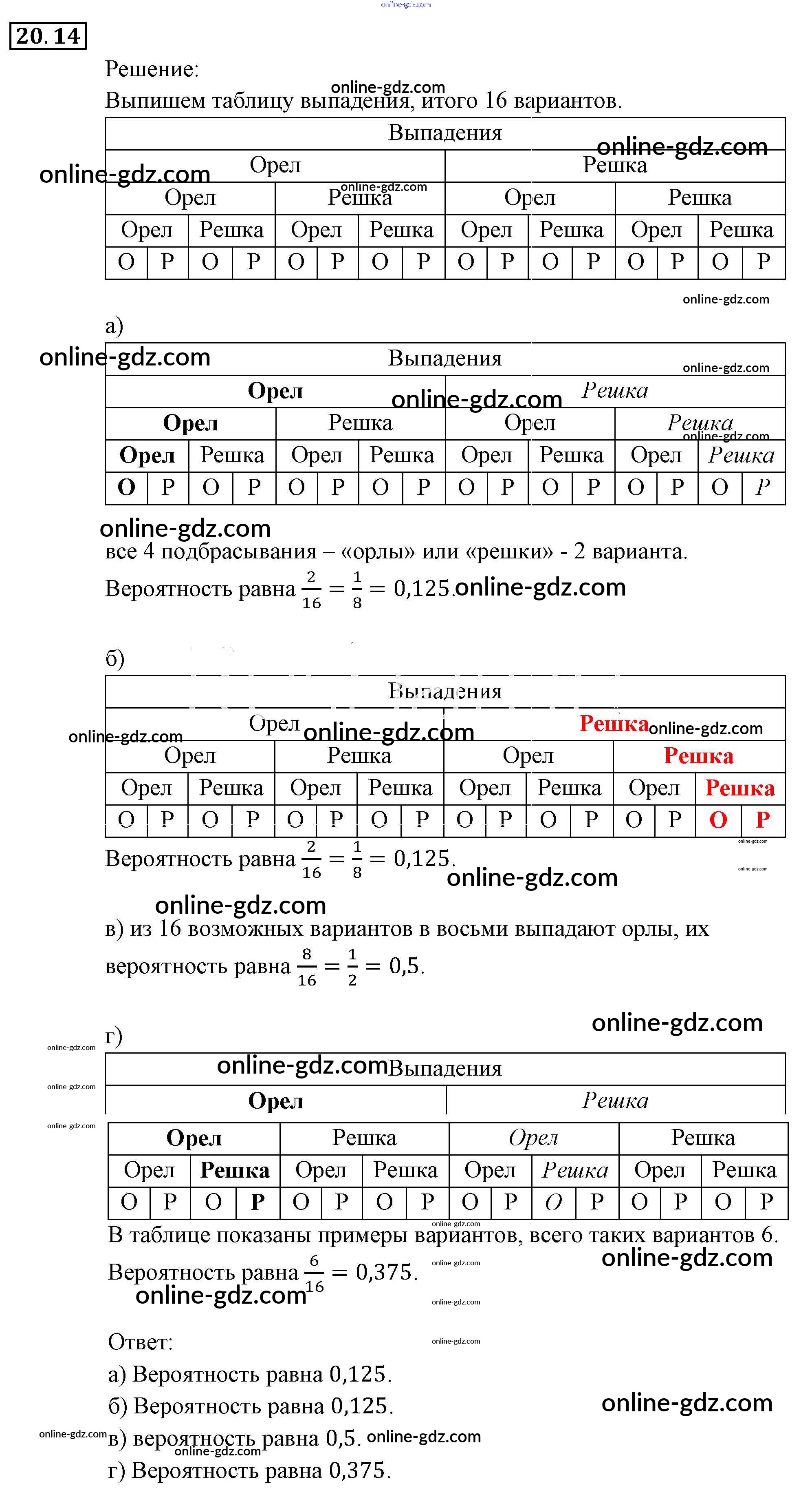 Готовые домашние задания по Алгебре за 9 класс Задачник Мордкович, Александрова 2010 - § 20. Простейшие вероятностные задачи Глава 5. Элементы комбинаторики, статистики и теории вероятностей 20.14