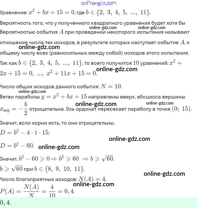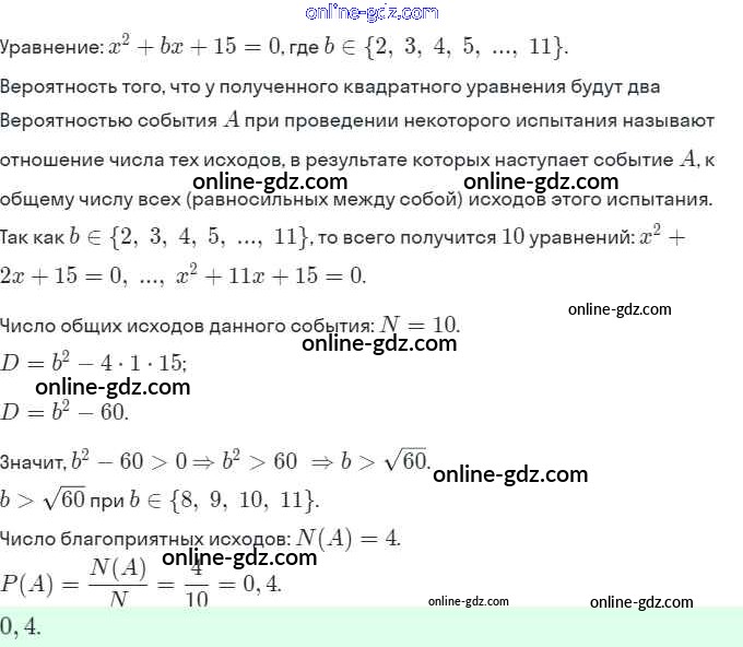 Готовые домашние задания по Алгебре за 9 класс Задачник Мордкович, Александрова 2010 - § 20. Простейшие вероятностные задачи Глава 5. Элементы комбинаторики, статистики и теории вероятностей 20.15