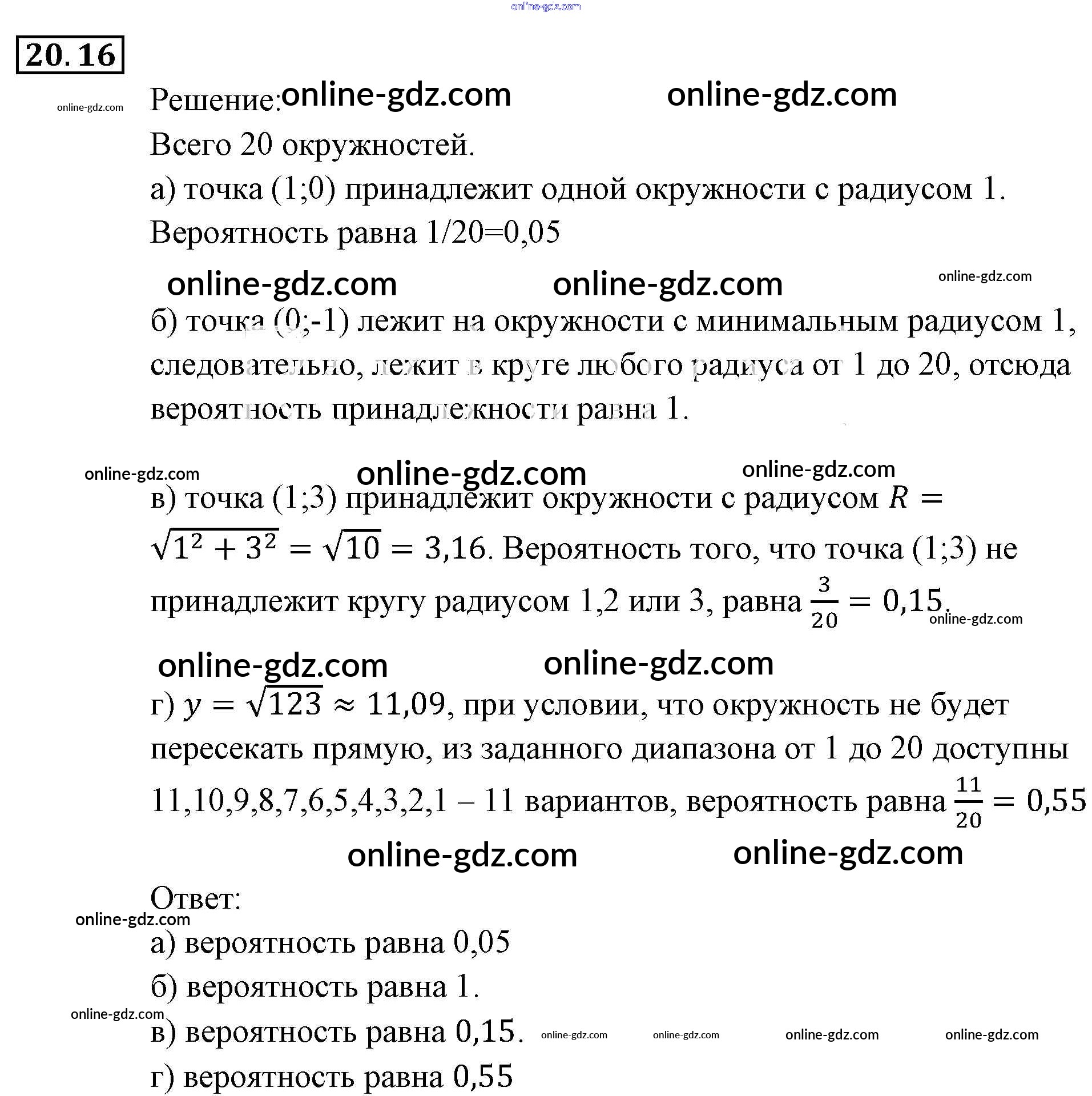 Готовые домашние задания по Алгебре за 9 класс Задачник Мордкович, Александрова 2010 - § 20. Простейшие вероятностные задачи Глава 5. Элементы комбинаторики, статистики и теории вероятностей 20.16