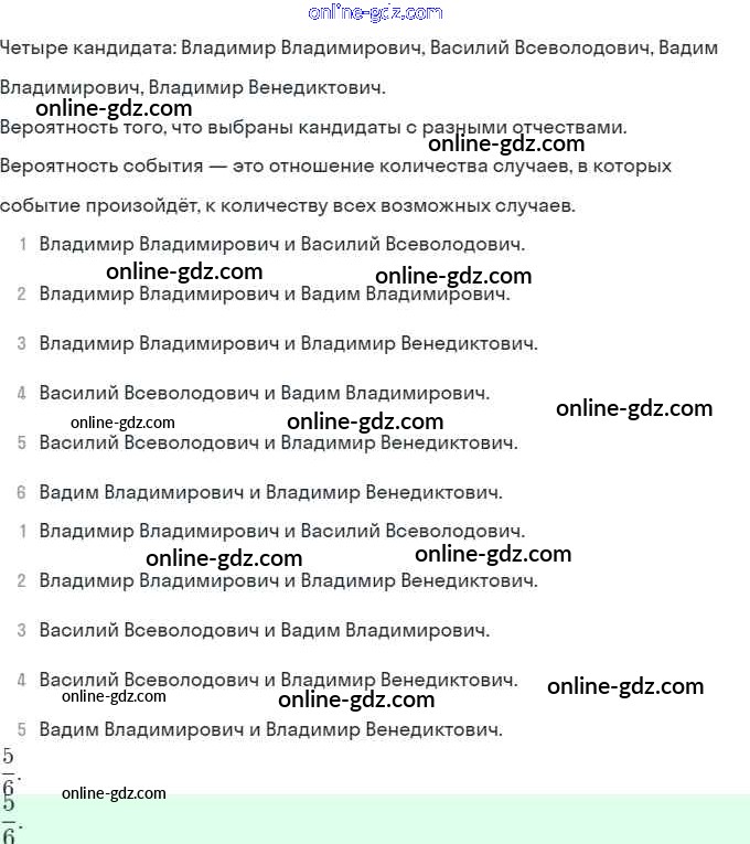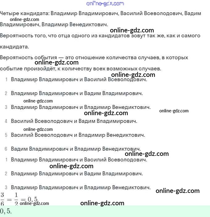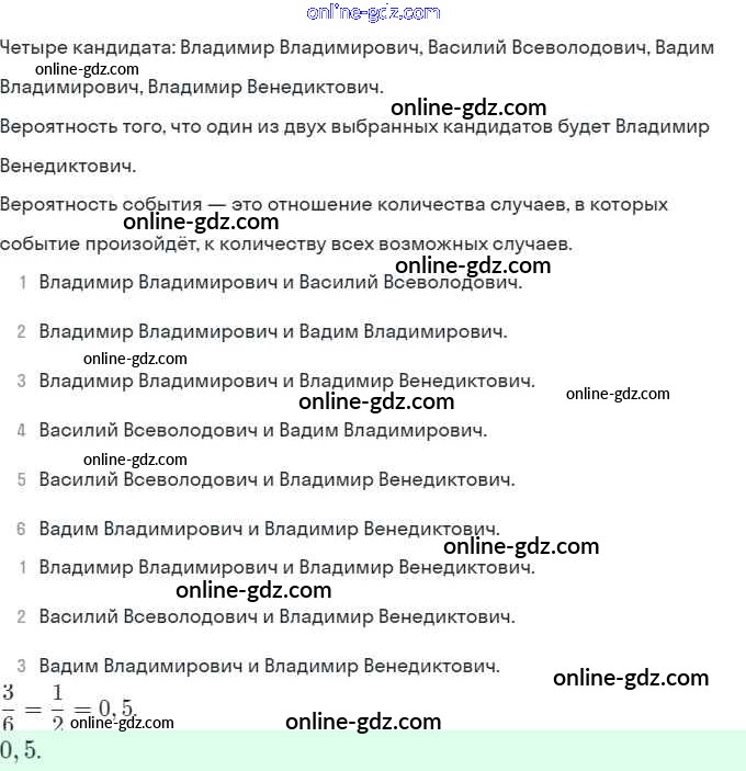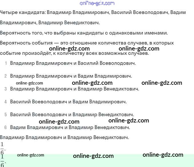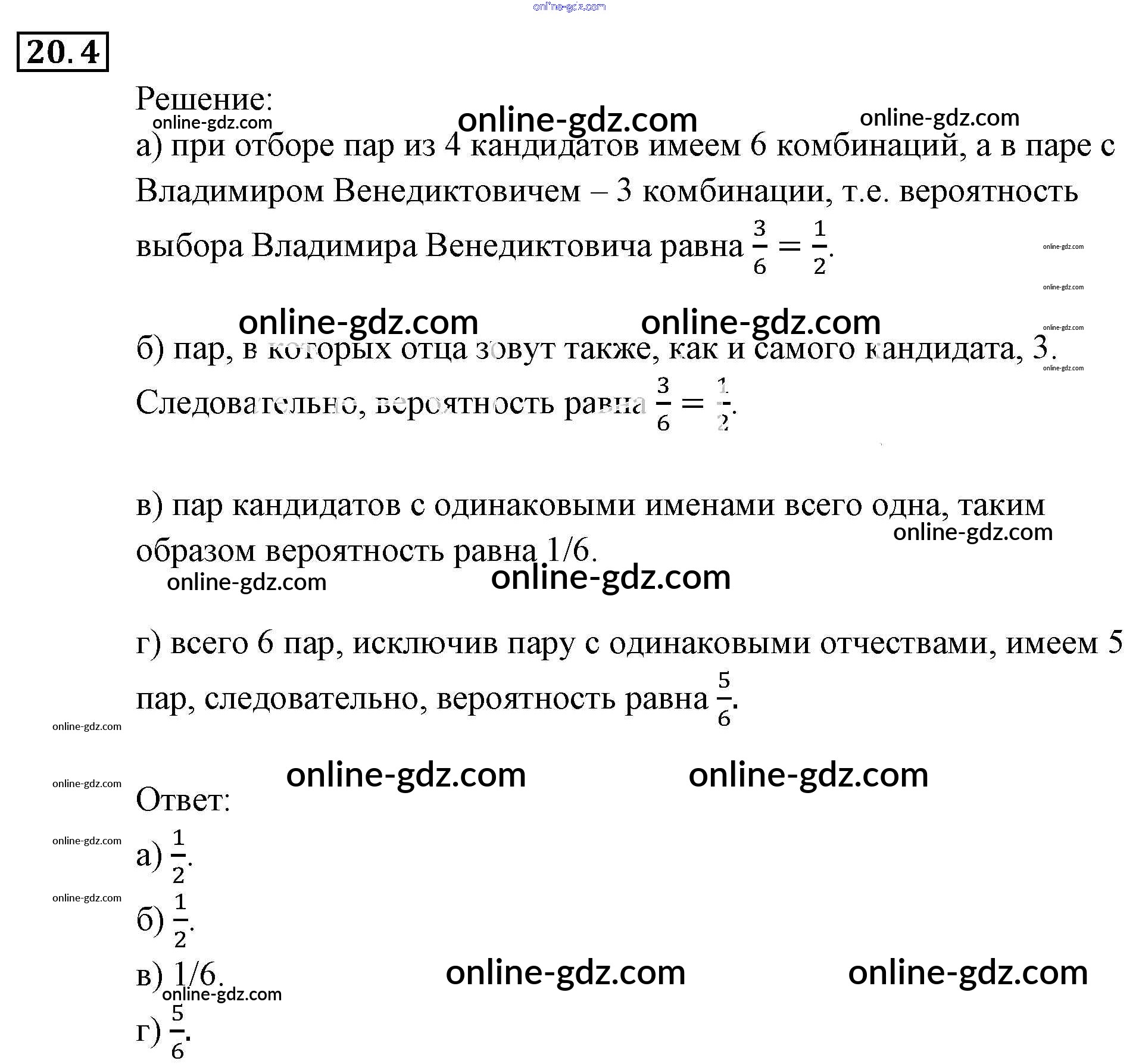 Готовые домашние задания по Алгебре за 9 класс Задачник Мордкович, Александрова 2010 - § 20. Простейшие вероятностные задачи Глава 5. Элементы комбинаторики, статистики и теории вероятностей 20.4
