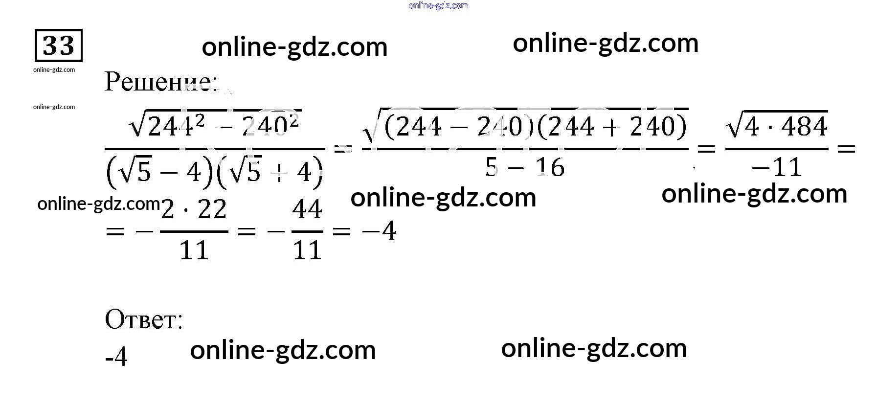 Готовые домашние задания по Алгебре за 9 класс Задачник Мордкович, Александрова 2010 - Числовые выражения Итоговое повторение (2010) 33