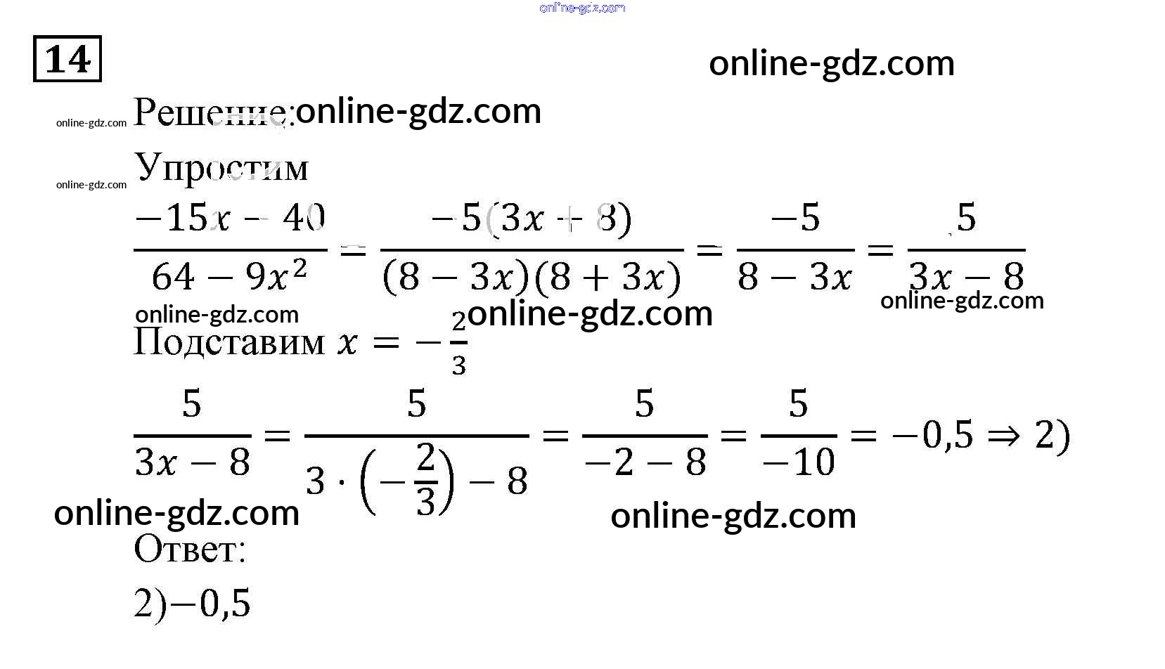 Готовые домашние задания по Алгебре за 9 класс Задачник Мордкович, Александрова 2010 - Алгебраические выражения Итоговое повторение (2010) 14