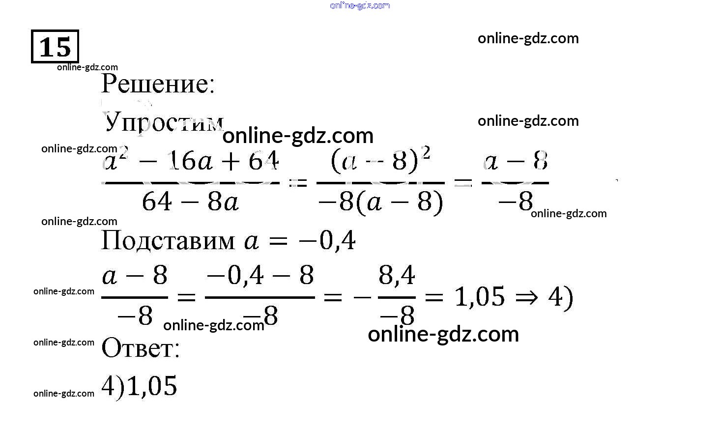 Готовые домашние задания по Алгебре за 9 класс Задачник Мордкович, Александрова 2010 - Алгебраические выражения Итоговое повторение (2010) 15
