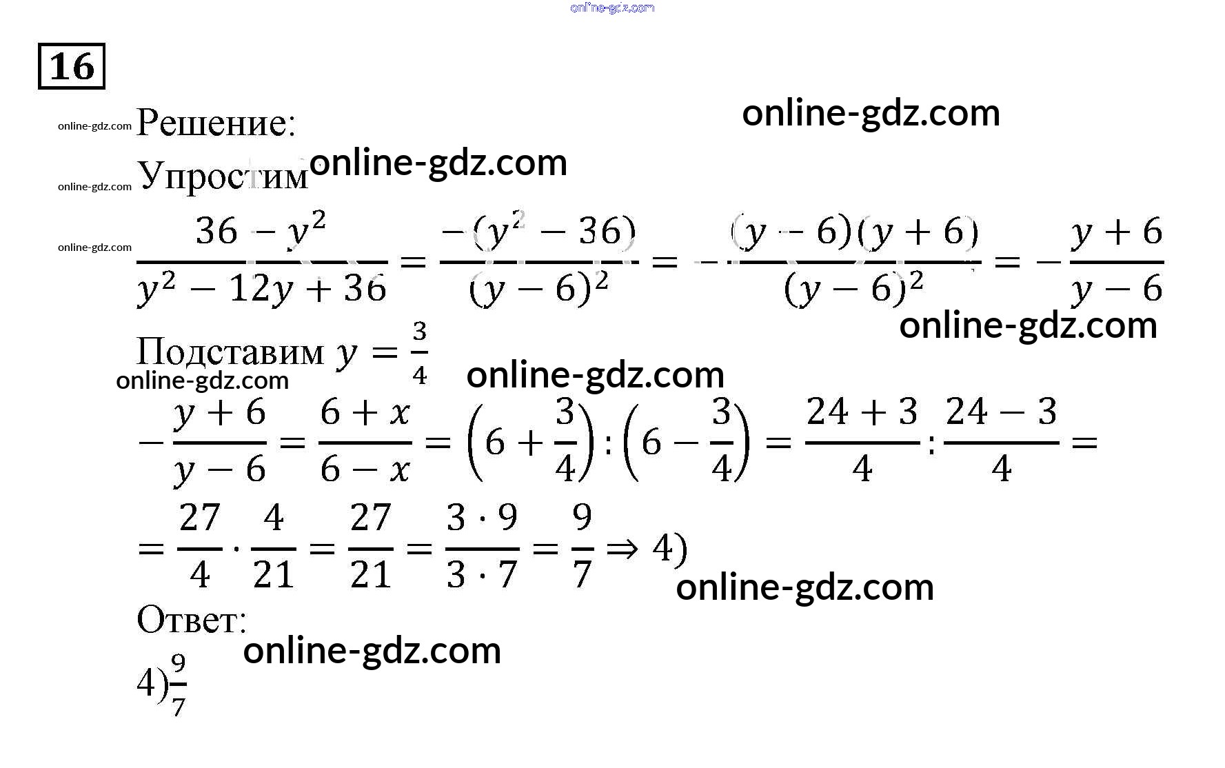 Готовые домашние задания по Алгебре за 9 класс Задачник Мордкович, Александрова 2010 - Алгебраические выражения Итоговое повторение (2010) 16