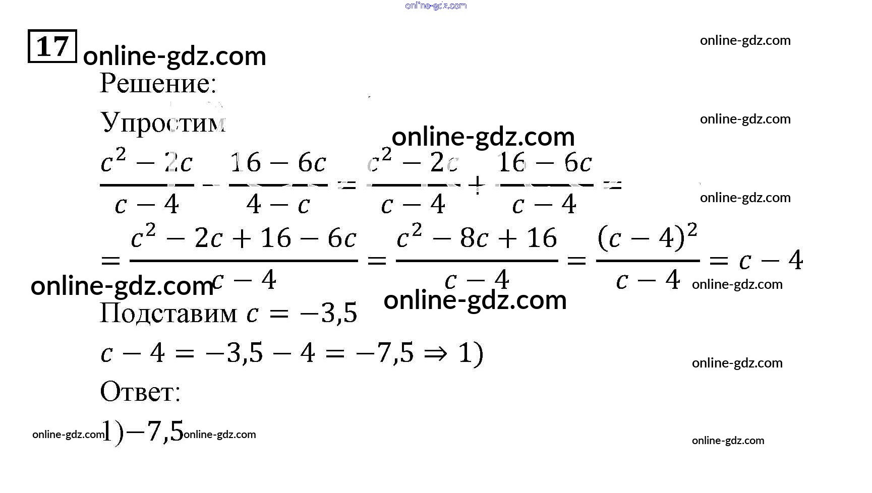Готовые домашние задания по Алгебре за 9 класс Задачник Мордкович, Александрова 2010 - Алгебраические выражения Итоговое повторение (2010) 17