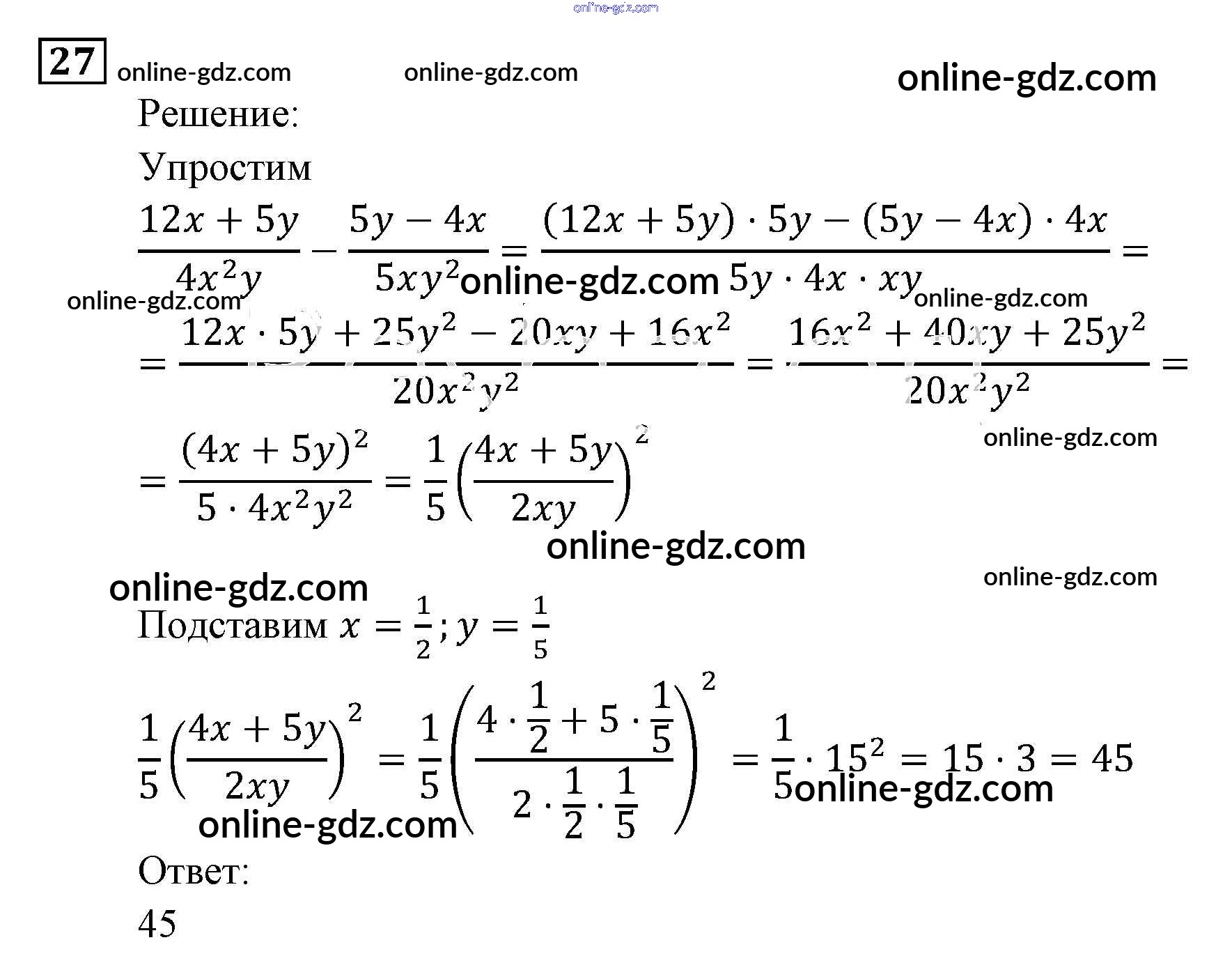Готовые домашние задания по Алгебре за 9 класс Задачник Мордкович, Александрова 2010 - Алгебраические выражения Итоговое повторение (2010) 27