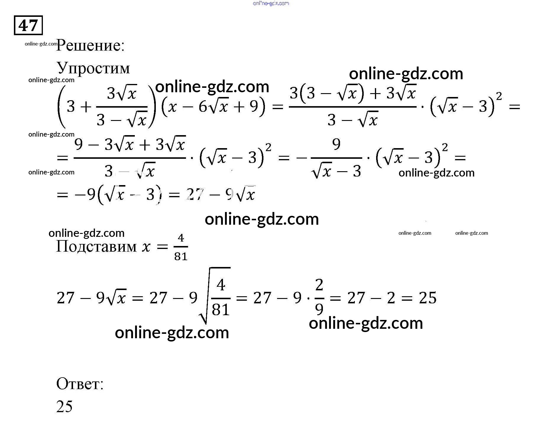 Готовые домашние задания по Алгебре за 9 класс Задачник Мордкович, Александрова 2010 - Алгебраические выражения Итоговое повторение (2010) 47