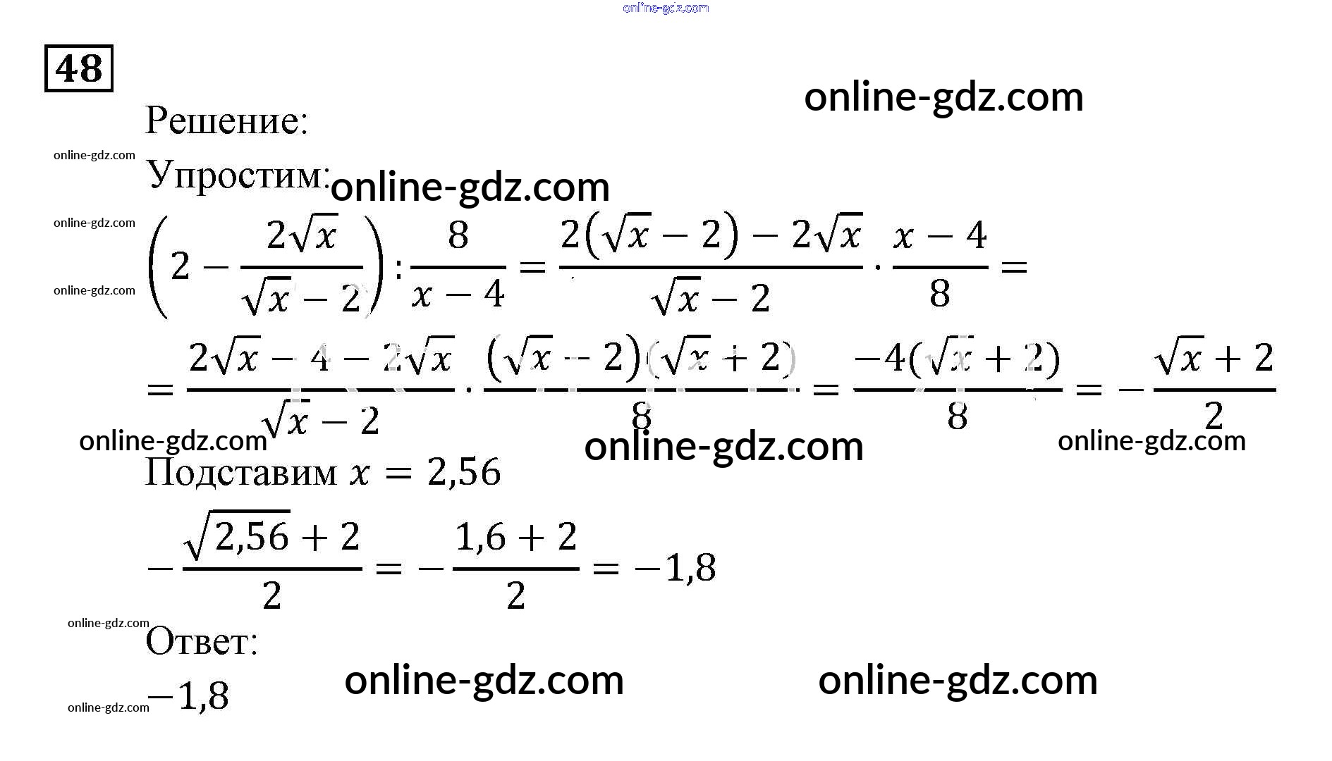 Готовые домашние задания по Алгебре за 9 класс Задачник Мордкович, Александрова 2010 - Алгебраические выражения Итоговое повторение (2010) 48