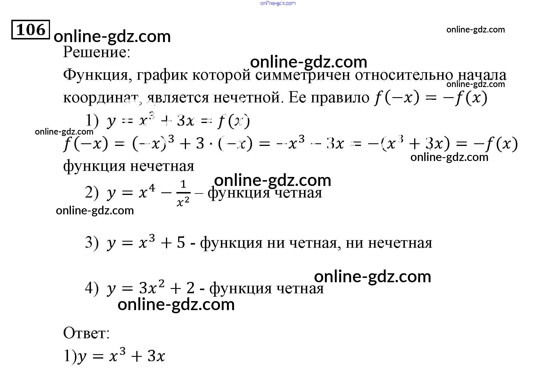Готовые домашние задания по Алгебре за 9 класс Задачник Мордкович, Александрова 2010 - Функции и графики Итоговое повторение (2010) 106