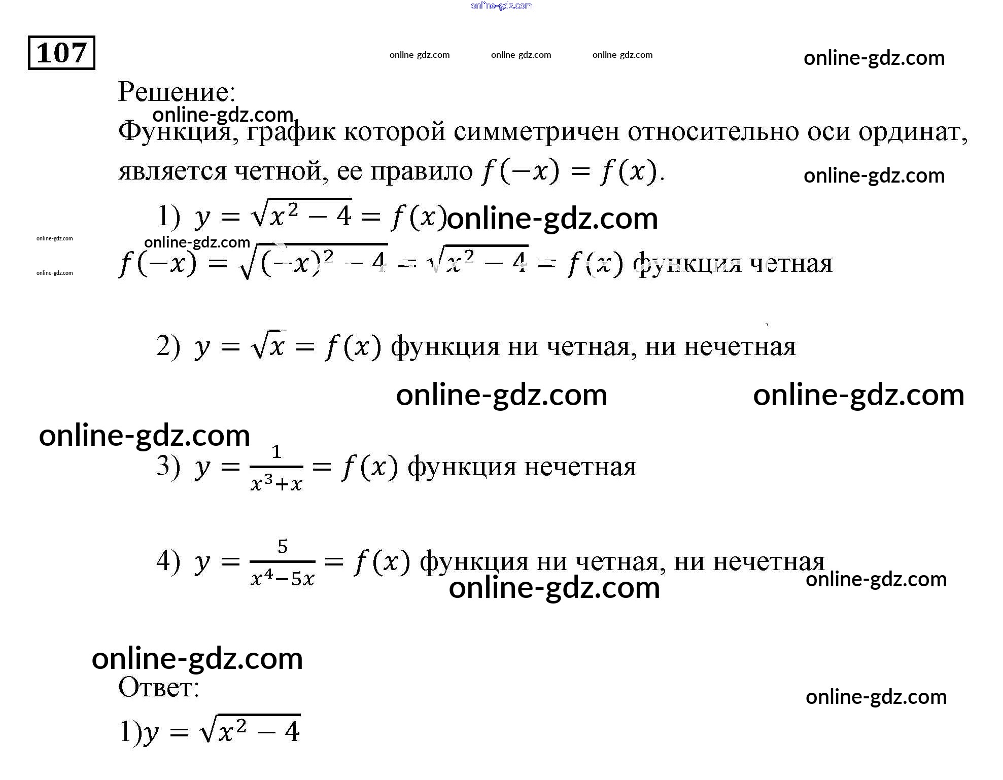 Готовые домашние задания по Алгебре за 9 класс Задачник Мордкович, Александрова 2010 - Функции и графики Итоговое повторение (2010) 107