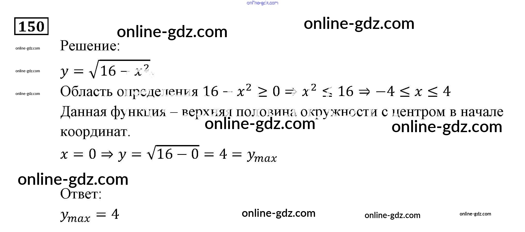 Готовые домашние задания по Алгебре за 9 класс Задачник Мордкович, Александрова 2010 - Функции и графики Итоговое повторение (2010) 150