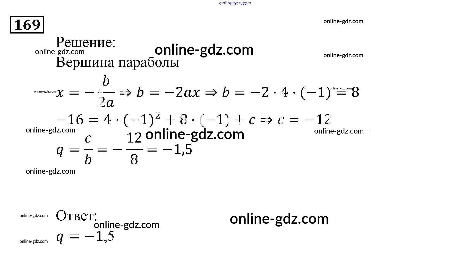 Готовые домашние задания по Алгебре за 9 класс Задачник Мордкович, Александрова 2010 - Функции и графики Итоговое повторение (2010) 169