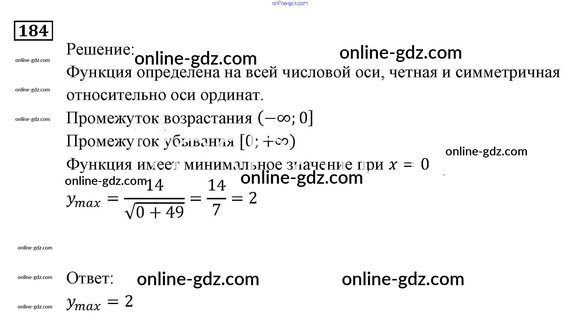 Готовые домашние задания по Алгебре за 9 класс Задачник Мордкович, Александрова 2010 - Функции и графики Итоговое повторение (2010) 184