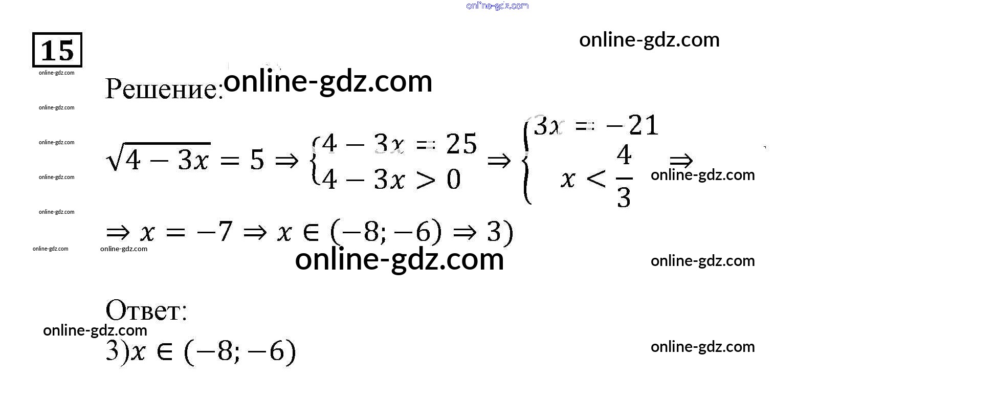Готовые домашние задания по Алгебре за 9 класс Задачник Мордкович, Александрова 2010 - Уравнения и системы уравнений Итоговое повторение (2010) 15