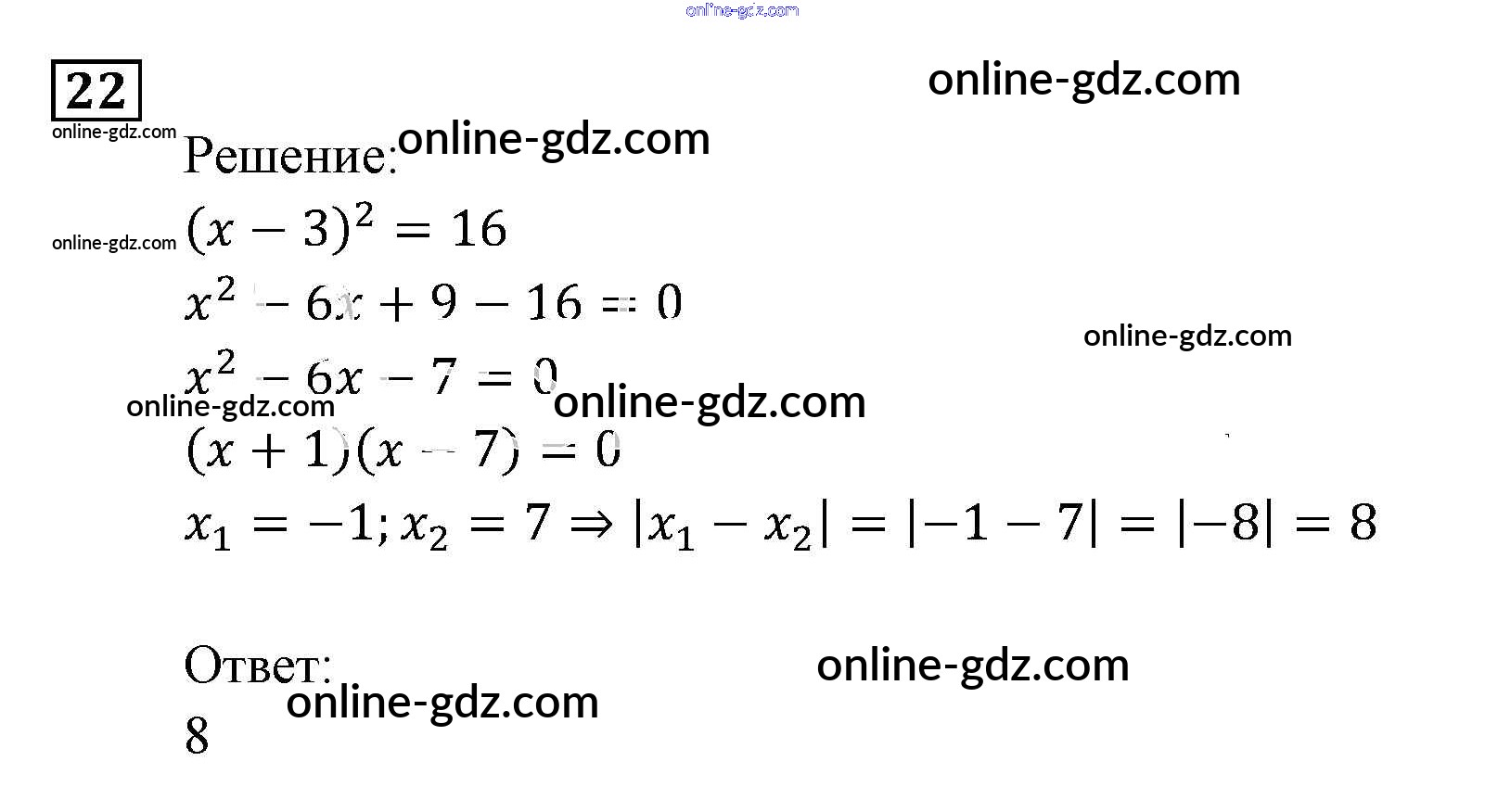 Готовые домашние задания по Алгебре за 9 класс Задачник Мордкович, Александрова 2010 - Уравнения и системы уравнений Итоговое повторение (2010) 22