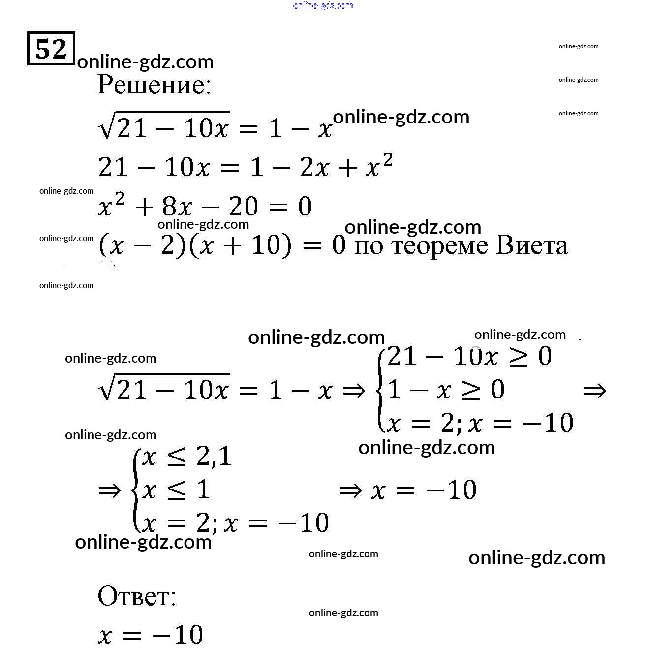 Готовые домашние задания по Алгебре за 9 класс Задачник Мордкович, Александрова 2010 - Уравнения и системы уравнений Итоговое повторение (2010) 52