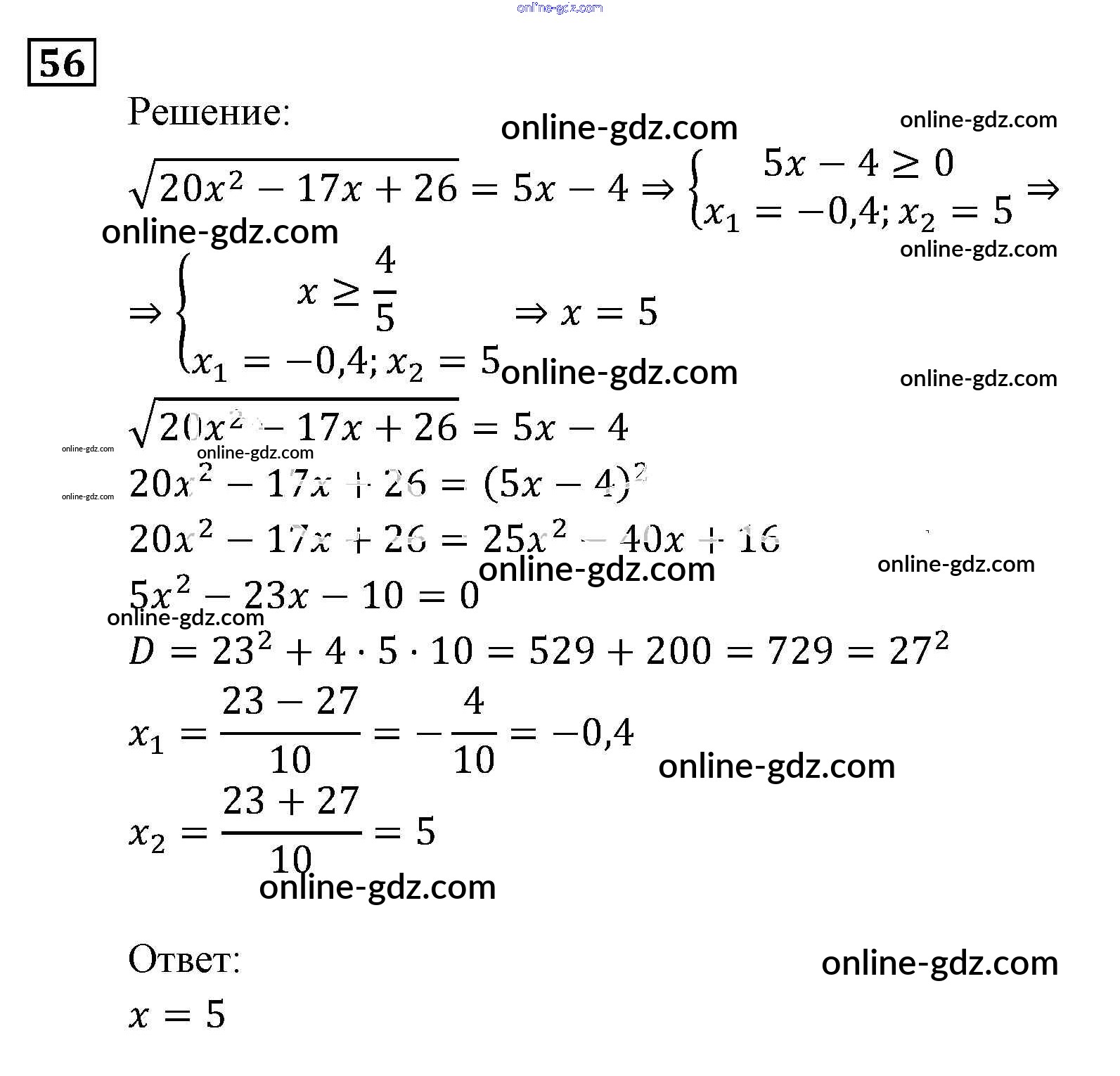Готовые домашние задания по Алгебре за 9 класс Задачник Мордкович, Александрова 2010 - Уравнения и системы уравнений Итоговое повторение (2010) 56