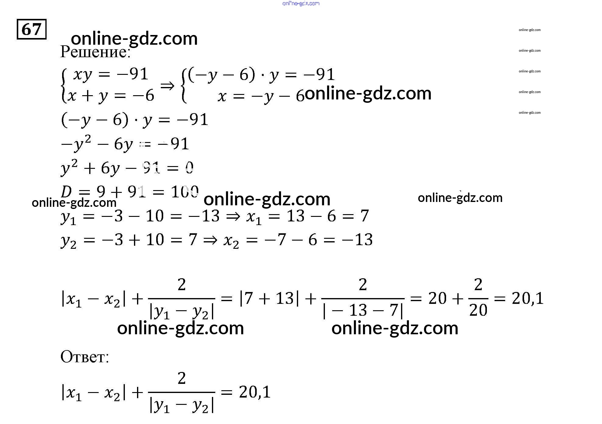 Готовые домашние задания по Алгебре за 9 класс Задачник Мордкович, Александрова 2010 - Уравнения и системы уравнений Итоговое повторение (2010) 67