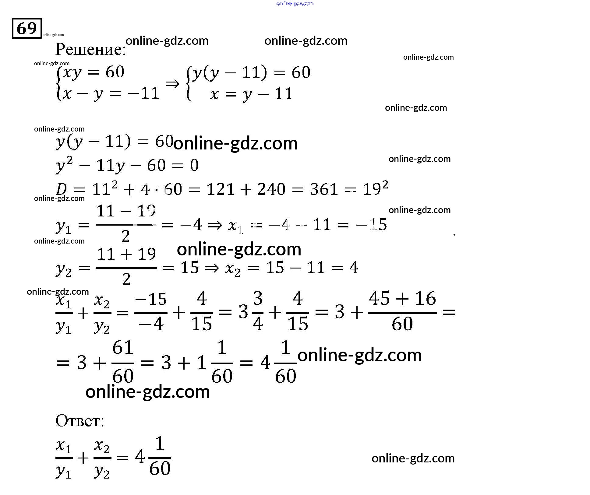 Готовые домашние задания по Алгебре за 9 класс Задачник Мордкович, Александрова 2010 - Уравнения и системы уравнений Итоговое повторение (2010) 69