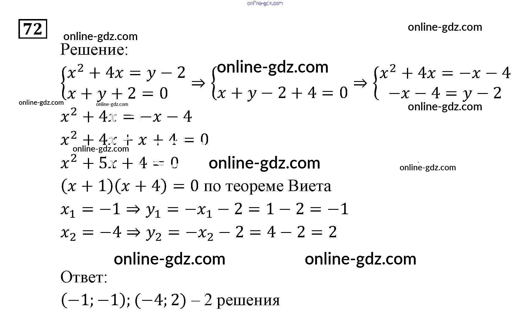 Готовые домашние задания по Алгебре за 9 класс Задачник Мордкович, Александрова 2010 - Уравнения и системы уравнений Итоговое повторение (2010) 72